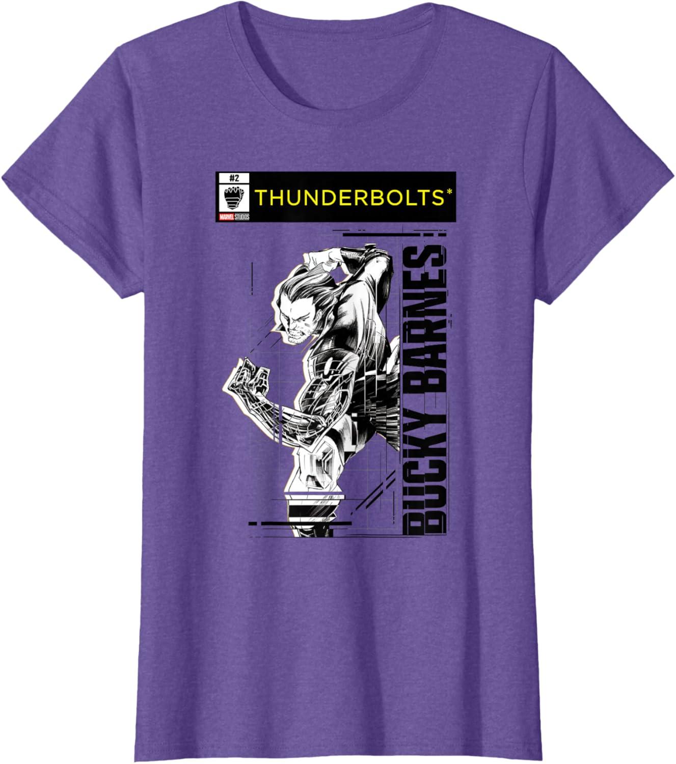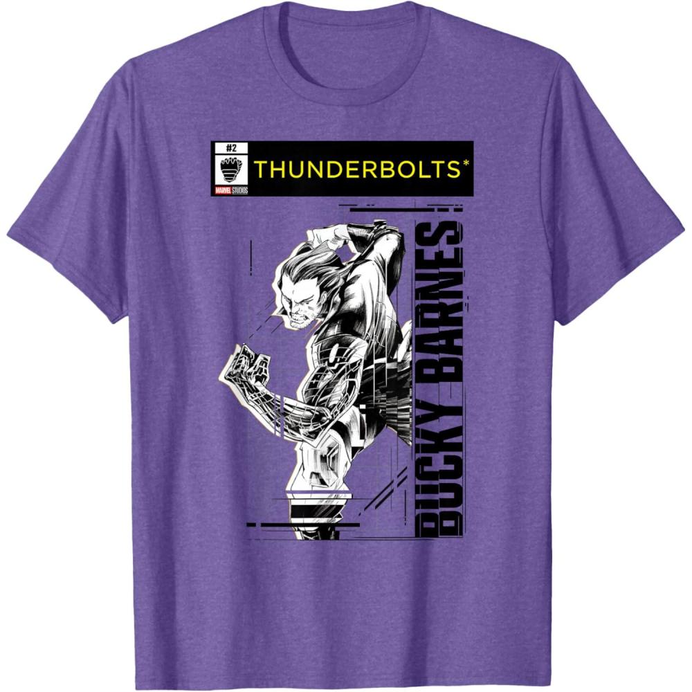 Be the first to review “Marvel Studios Thunderbolts Bucky Barnes B&W Comic Cover #2 T-Shirt(Purple Heather)”