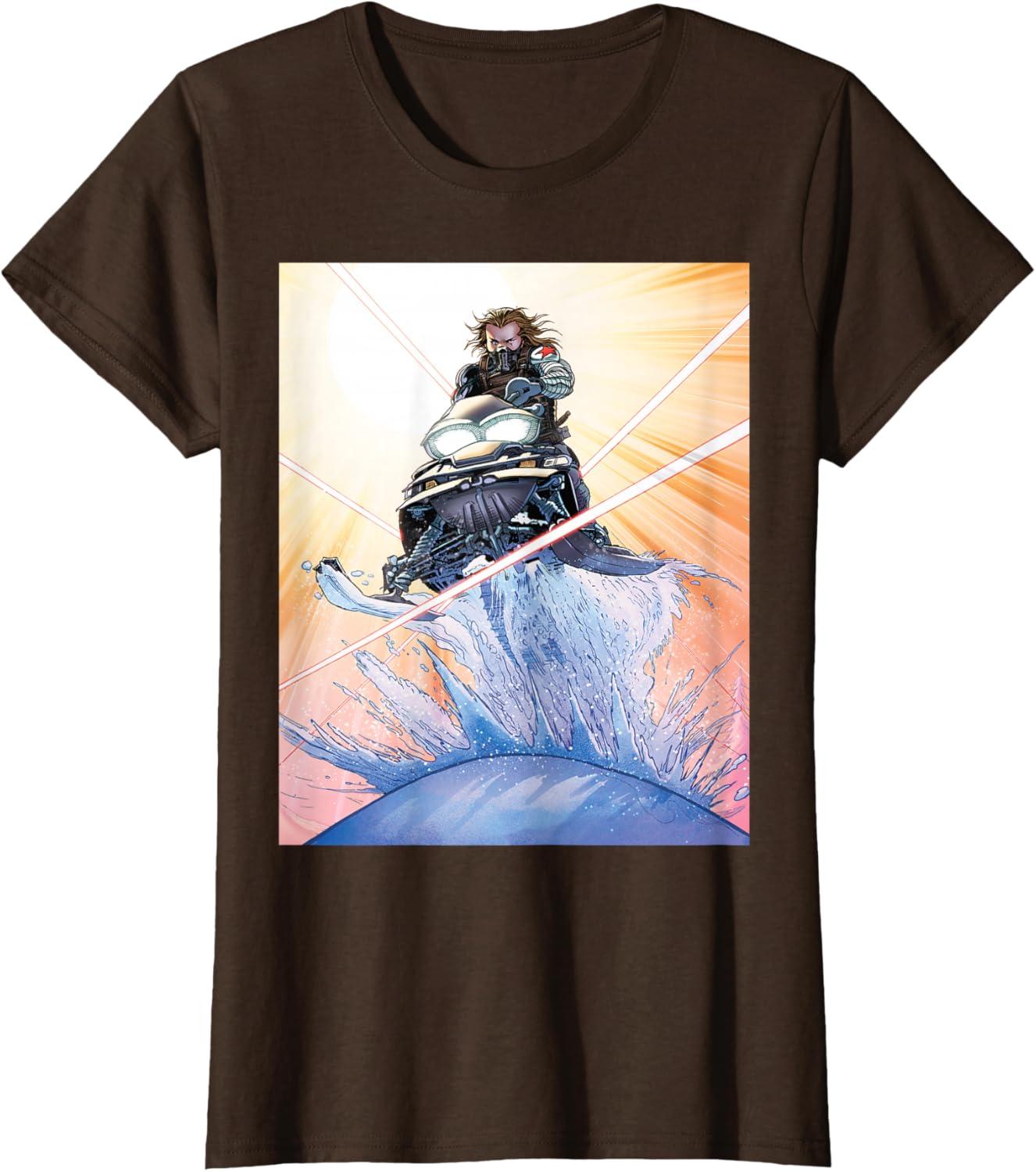 Marvel Studios Thunderbolts Comic Art Bucky Barnes Snow Jump T-Shirt(Brown)
