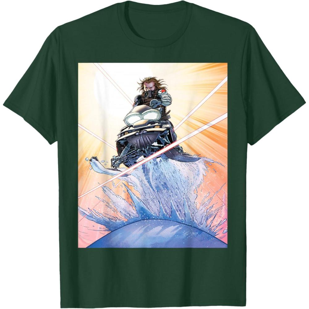 Marvel Studios Thunderbolts Comic Art Bucky Barnes Snow Jump T-Shirt(Dark Green)