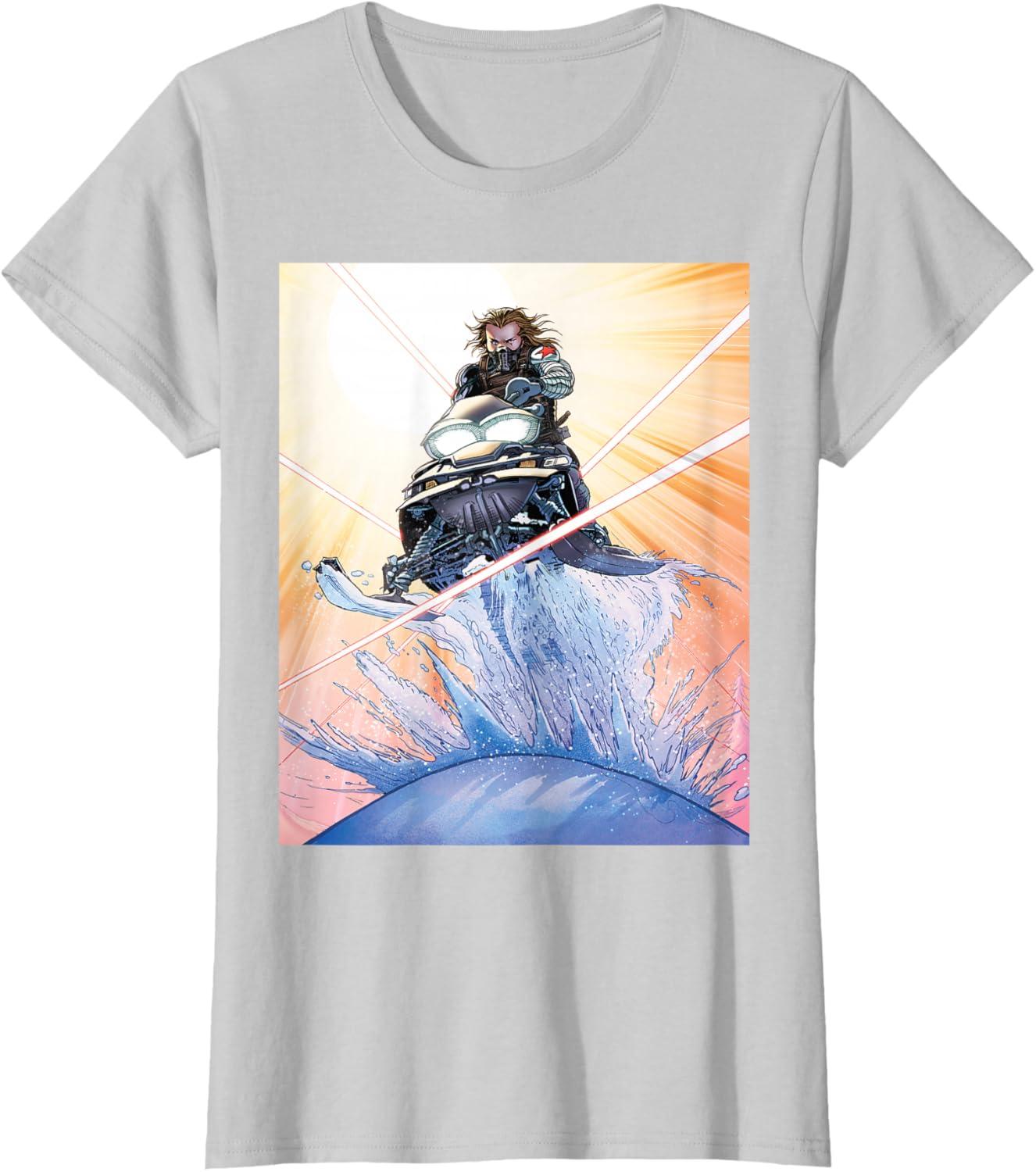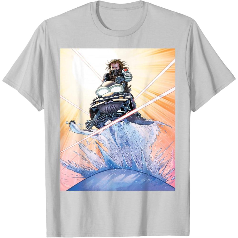 Marvel Studios Thunderbolts Comic Art Bucky Barnes Snow Jump T-Shirt(Silver Grey)