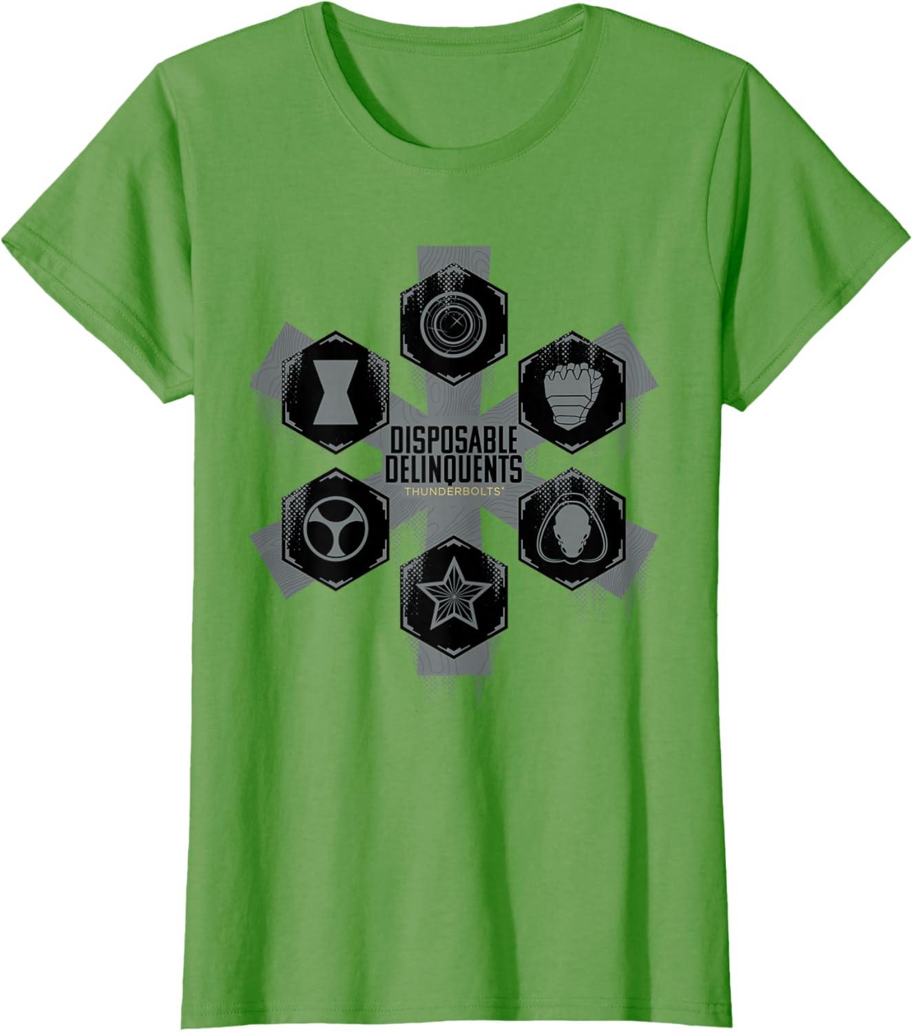 imageMarvel Studios Thunderbolts quotDisposable Delinquentsquot Team TShirtGrass Green