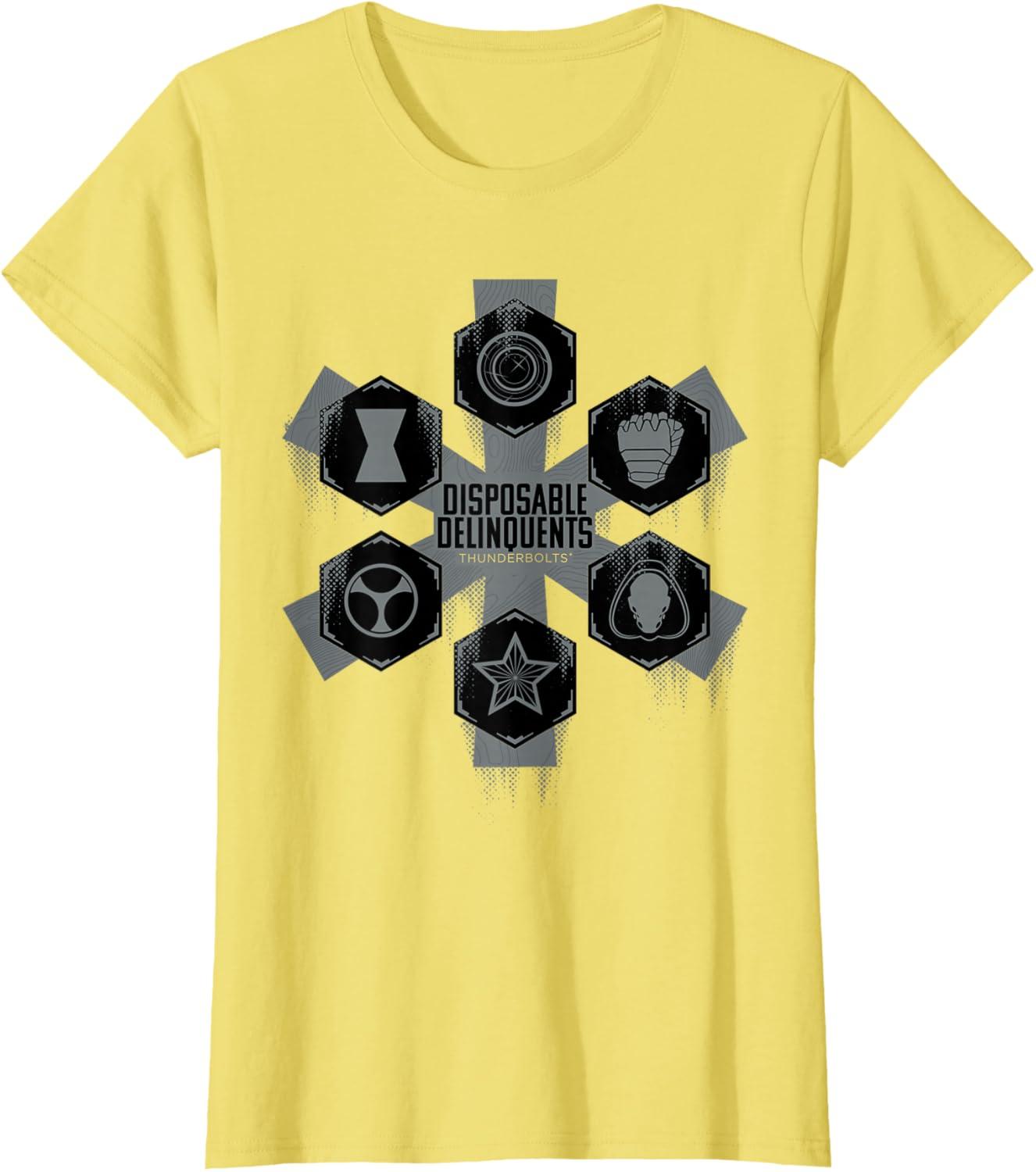 imageMarvel Studios Thunderbolts quotDisposable Delinquentsquot Team TShirtLemon Yellow