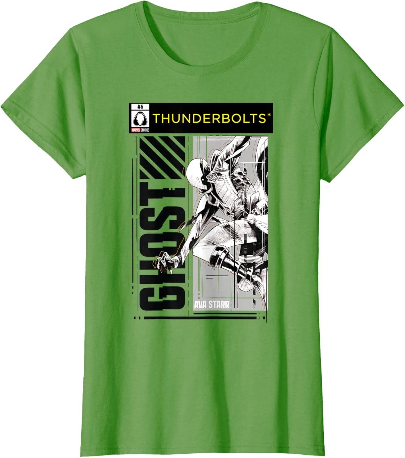 Not super. Not heroes. Not giving up. Join the most unexpected new team in the Marvel Cinematic Universe! This official Marvel tee or hoodie from Marvel Studios' blockbuster movie “Thunderbolts” features action-packed, black-and-white comic cover style art of Ghost, the intangible Ava Starr, with a Thunderbolts logo at the top. A great gift for a Marvel Super Heroes, Thunderbolts, or MCU fan — collect the whole team with numbered designs featuring Yelena Belova, Bucky Barnes, Red Guardian, Taskmaster, and John F. Walker! Planning a trip to Avengers Campus at Disney California Adventure Park or another super destination? Get multiples and wear matching Marvel's Thunderbolts t-shirts with friends and family for even more superhero-sized fun! Find it in a t-shirt, premium t-shirt, tank top, v-neck, long sleeve tee, hoodie, and sweatshirt.