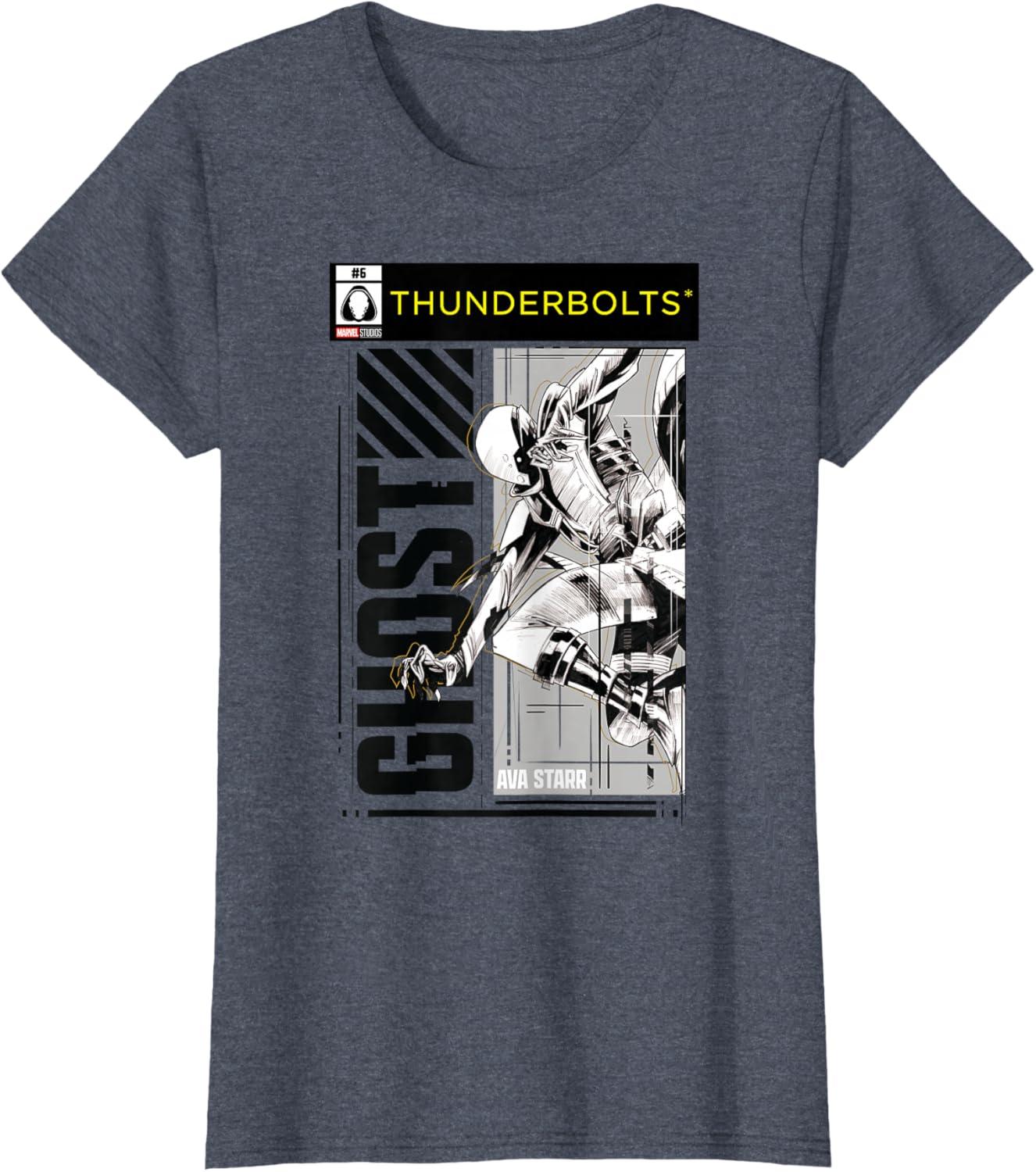Not super. Not heroes. Not giving up. Join the most unexpected new team in the Marvel Cinematic Universe! This official Marvel tee or hoodie from Marvel Studios' blockbuster movie “Thunderbolts” features action-packed, black-and-white comic cover style art of Ghost, the intangible Ava Starr, with a Thunderbolts logo at the top. A great gift for a Marvel Super Heroes, Thunderbolts, or MCU fan — collect the whole team with numbered designs featuring Yelena Belova, Bucky Barnes, Red Guardian, Taskmaster, and John F. Walker! Planning a trip to Avengers Campus at Disney California Adventure Park or another super destination? Get multiples and wear matching Marvel's Thunderbolts t-shirts with friends and family for even more superhero-sized fun! Find it in a t-shirt, premium t-shirt, tank top, v-neck, long sleeve tee, hoodie, and sweatshirt.