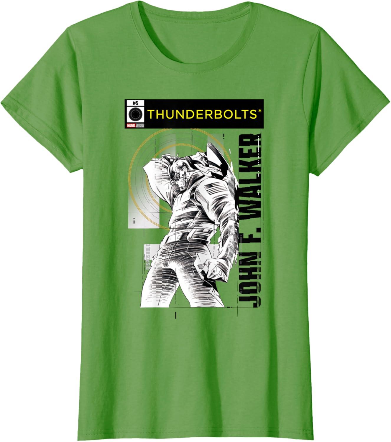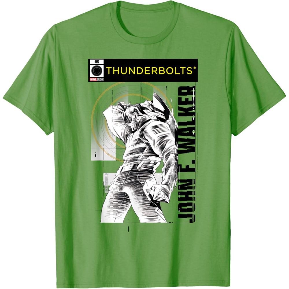 Not super. Not heroes. Not giving up. Join the most unexpected new team in the Marvel Cinematic Universe! This official Marvel tee or hoodie from Marvel Studios' blockbuster movie “Thunderbolts” features action-packed, black-and-white comic cover style art of John F. Walker, once the replacement Captain America, with a Thunderbolts logo at the top. A great gift for a Marvel Super Heroes, Thunderbolts, or MCU fan — collect the whole team with numbered designs featuring Yelena Belova, Bucky Barnes, Red Guardian, Taskmaster, and Ghost! Planning a trip to Avengers Campus at Disney California Adventure Park or another super destination? Get multiples and wear matching Marvel's Thunderbolts t-shirts with friends and family for even more superhero-sized fun! Find it in a t-shirt, premium t-shirt, tank top, v-neck, long sleeve tee, hoodie, and sweatshirt.