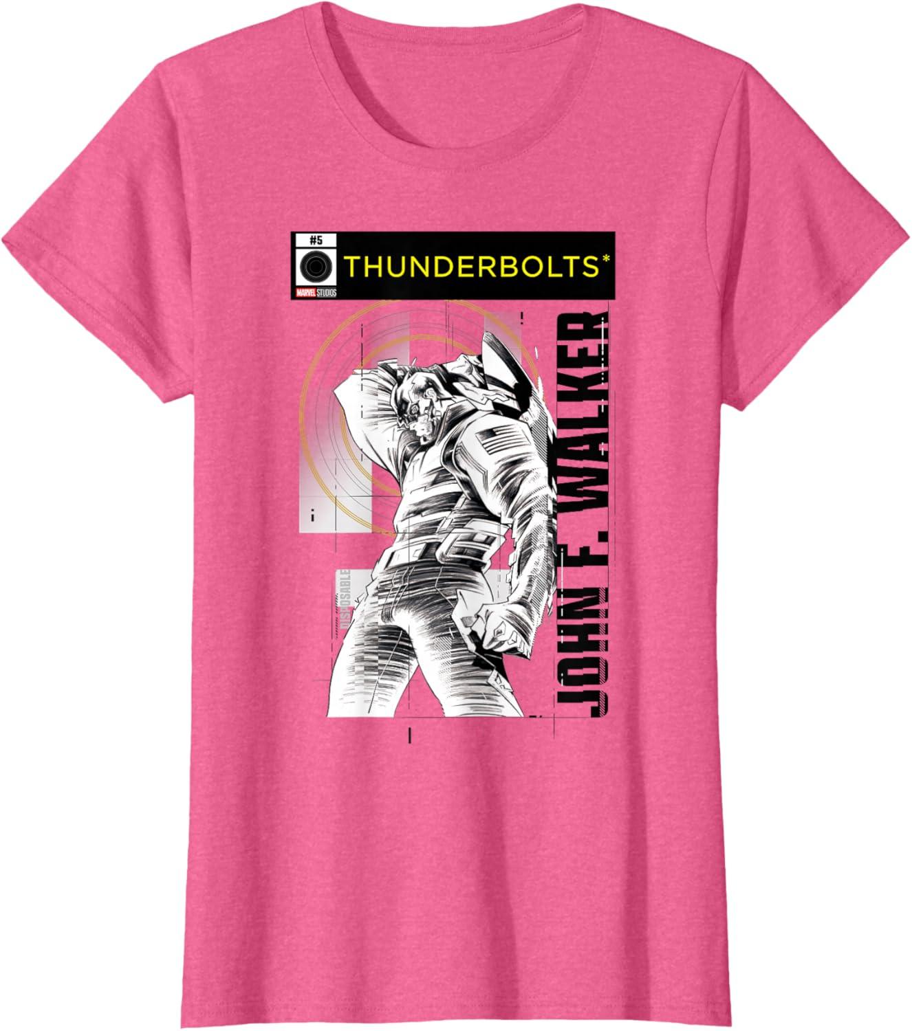 Not super. Not heroes. Not giving up. Join the most unexpected new team in the Marvel Cinematic Universe! This official Marvel tee or hoodie from Marvel Studios' blockbuster movie “Thunderbolts” features action-packed, black-and-white comic cover style art of John F. Walker, once the replacement Captain America, with a Thunderbolts logo at the top. A great gift for a Marvel Super Heroes, Thunderbolts, or MCU fan — collect the whole team with numbered designs featuring Yelena Belova, Bucky Barnes, Red Guardian, Taskmaster, and Ghost! Planning a trip to Avengers Campus at Disney California Adventure Park or another super destination? Get multiples and wear matching Marvel's Thunderbolts t-shirts with friends and family for even more superhero-sized fun! Find it in a t-shirt, premium t-shirt, tank top, v-neck, long sleeve tee, hoodie, and sweatshirt.