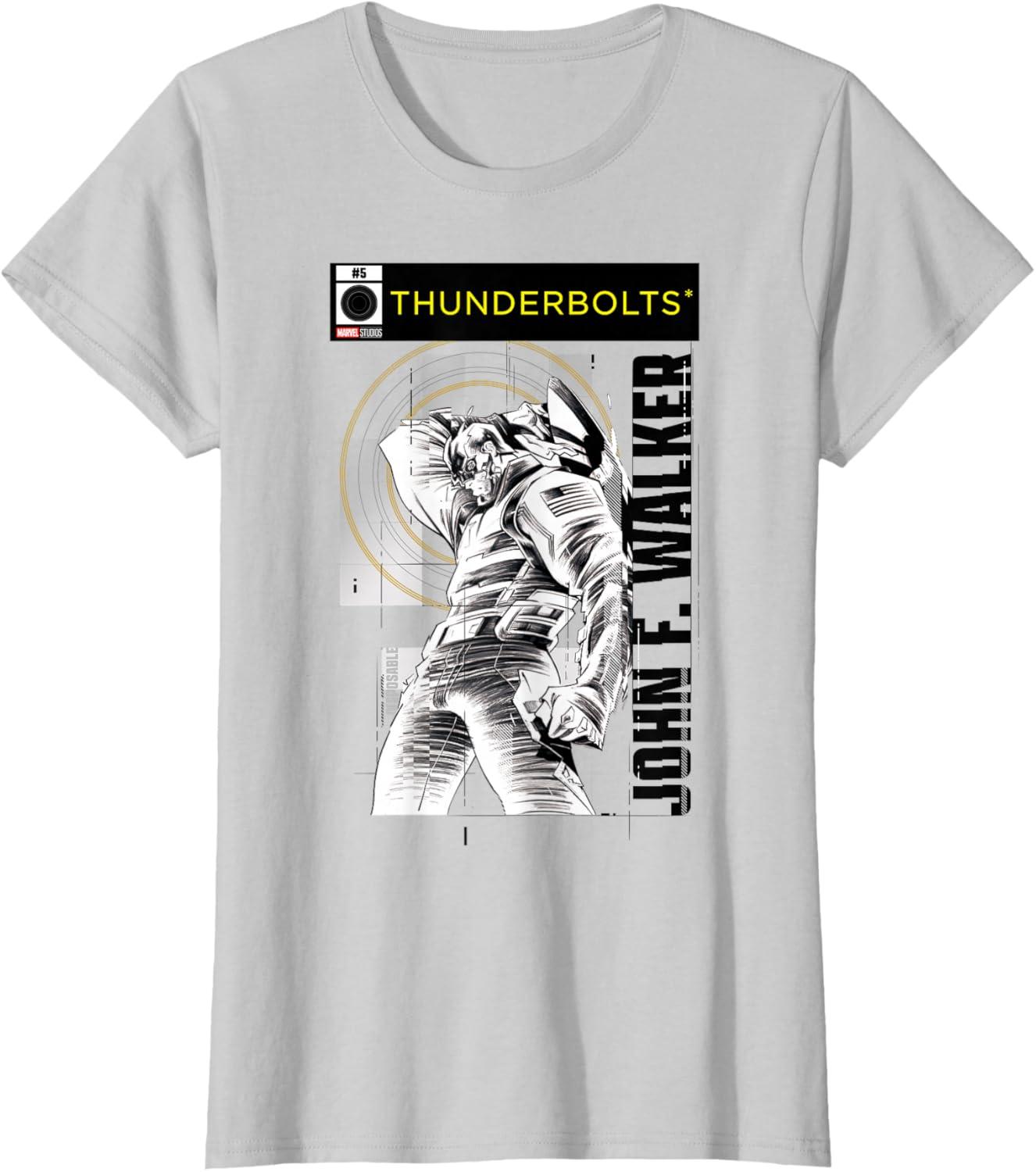 Not super. Not heroes. Not giving up. Join the most unexpected new team in the Marvel Cinematic Universe! This official Marvel tee or hoodie from Marvel Studios' blockbuster movie “Thunderbolts” features action-packed, black-and-white comic cover style art of John F. Walker, once the replacement Captain America, with a Thunderbolts logo at the top. A great gift for a Marvel Super Heroes, Thunderbolts, or MCU fan — collect the whole team with numbered designs featuring Yelena Belova, Bucky Barnes, Red Guardian, Taskmaster, and Ghost! Planning a trip to Avengers Campus at Disney California Adventure Park or another super destination? Get multiples and wear matching Marvel's Thunderbolts t-shirts with friends and family for even more superhero-sized fun! Find it in a t-shirt, premium t-shirt, tank top, v-neck, long sleeve tee, hoodie, and sweatshirt.