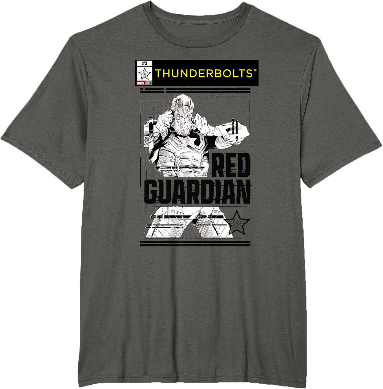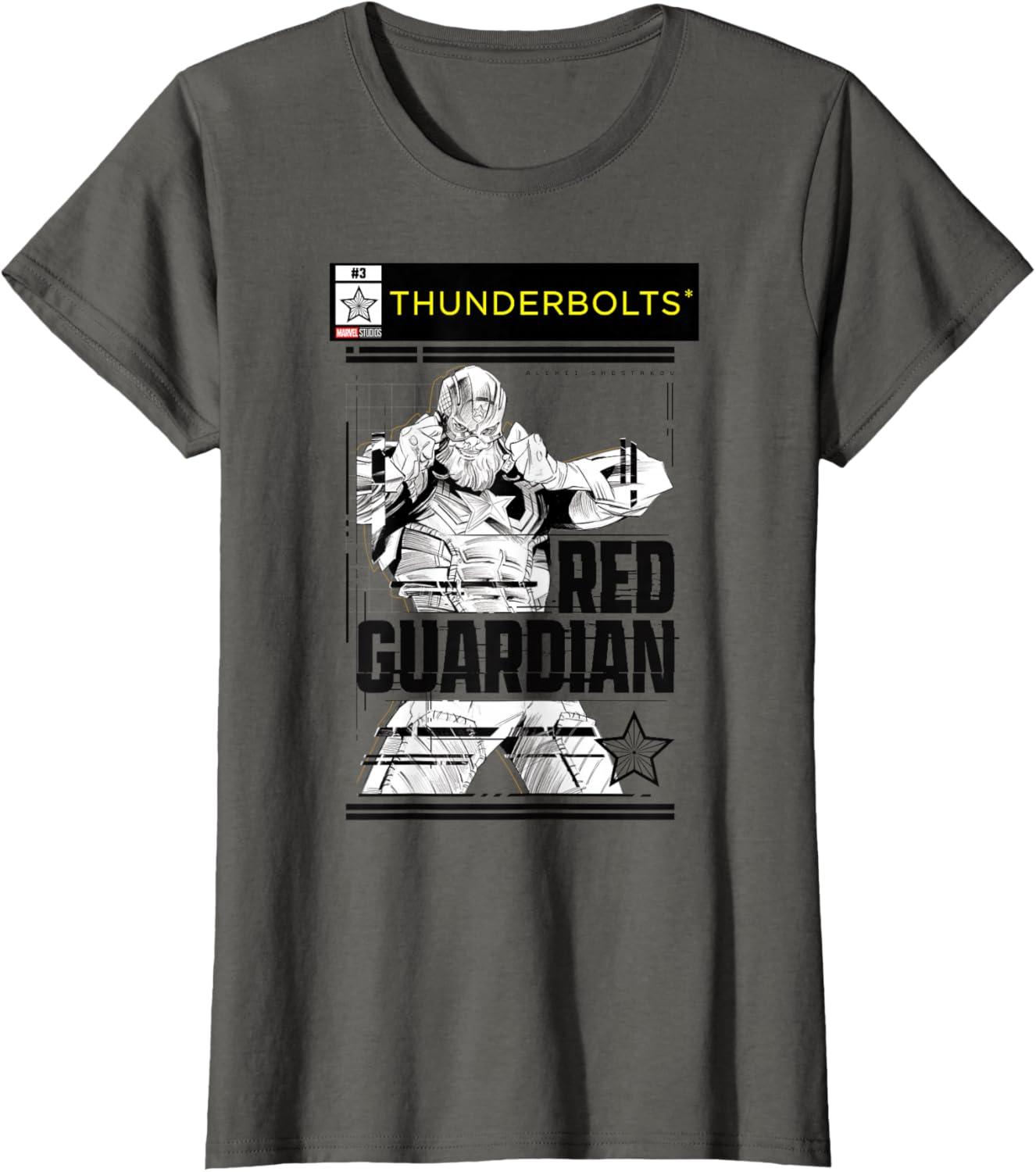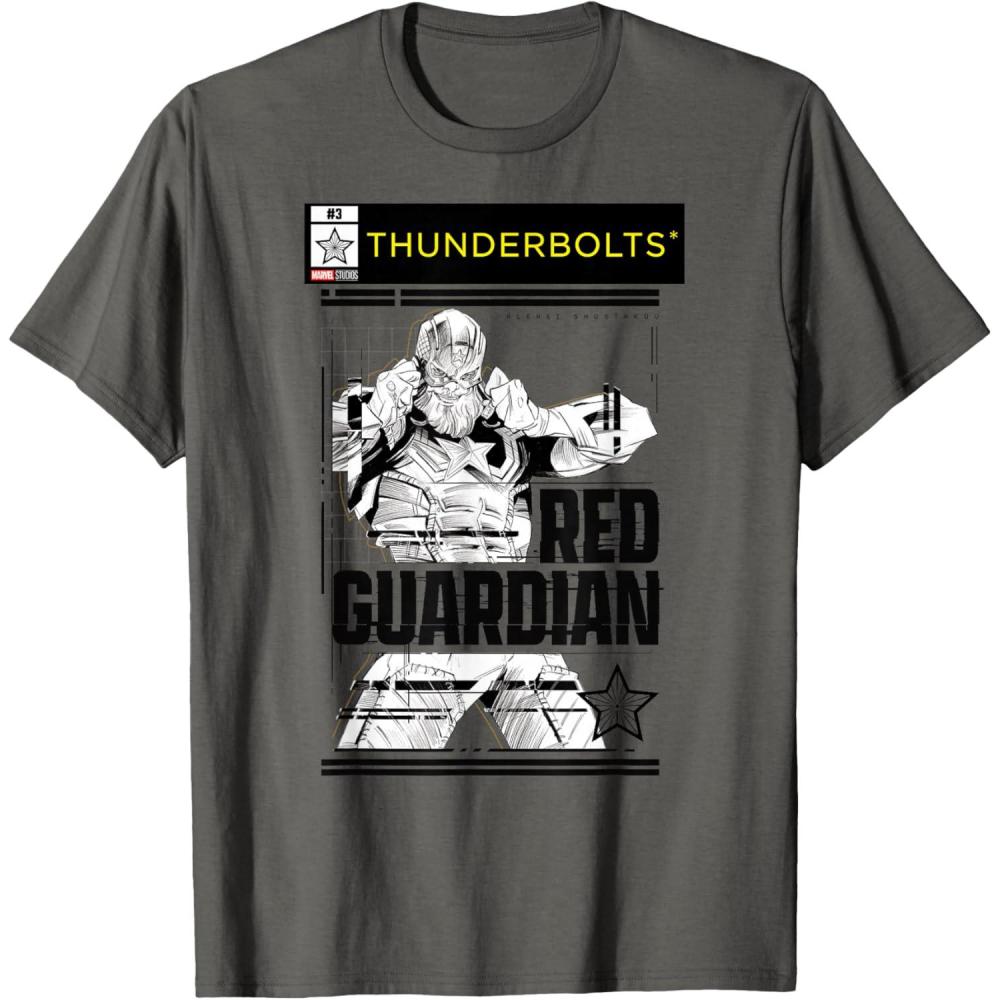 Not super. Not heroes. Not giving up. Join the most unexpected new team in the Marvel Cinematic Universe! This official Marvel tee or hoodie from Marvel Studios' blockbuster movie “Thunderbolts” features action-packed, black-and-white comic cover style art of Red Guardian, the former Russian super soldier Alexei Shostakov, with a Thunderbolts logo at the top. A great gift for a Marvel Super Heroes, Thunderbolts, or MCU fan — collect the whole team with numbered designs featuring Yelena Belova, Bucky Barnes, Taskmaster, John F. Walker, and Ghost! Planning a trip to Avengers Campus at Disney California Adventure Park or another super destination? Get multiples and wear matching Marvel's Thunderbolts t-shirts with friends and family for even more superhero-sized fun! Find it in a t-shirt, premium t-shirt, tank top, v-neck, long sleeve tee, hoodie, and sweatshirt.