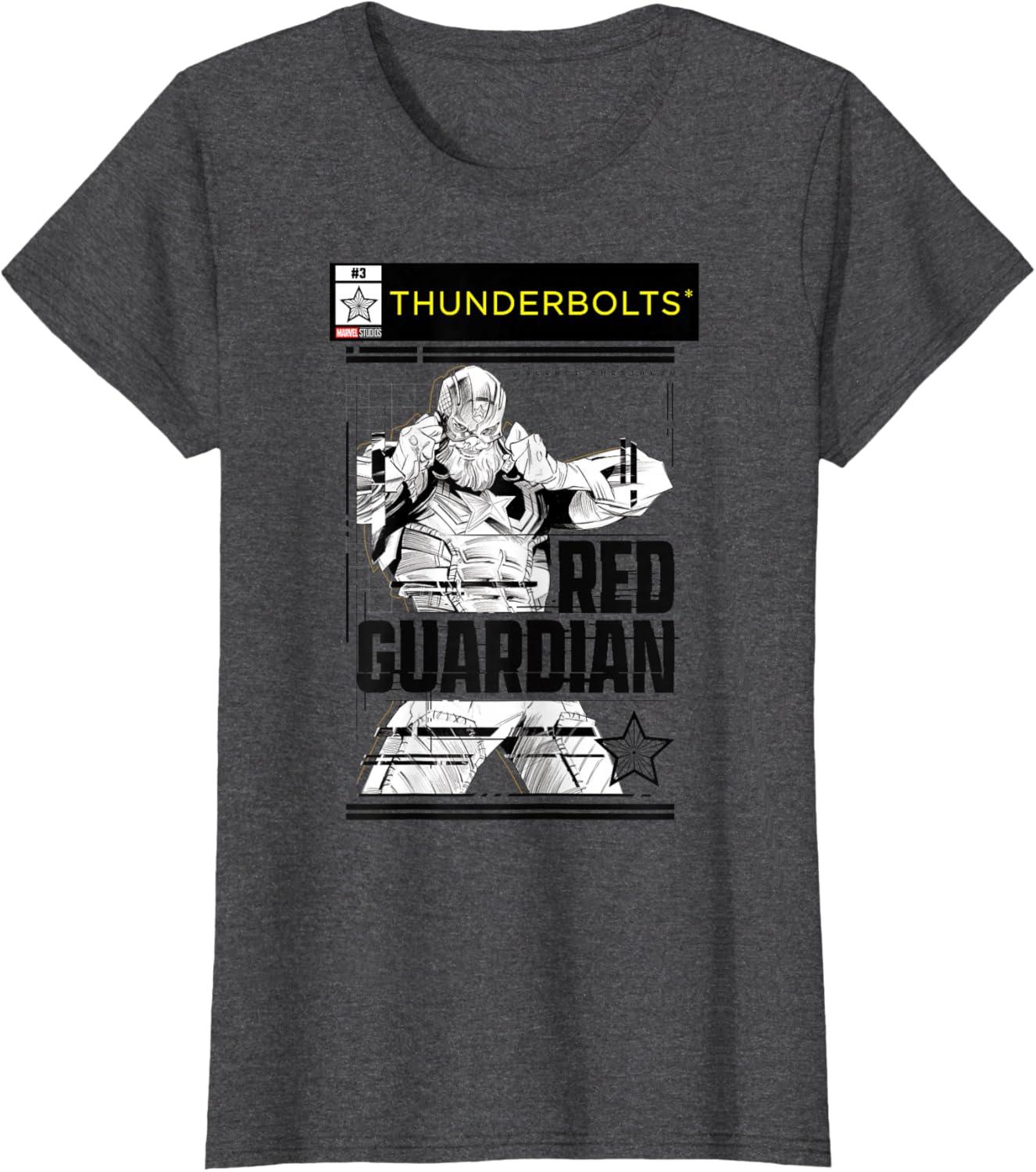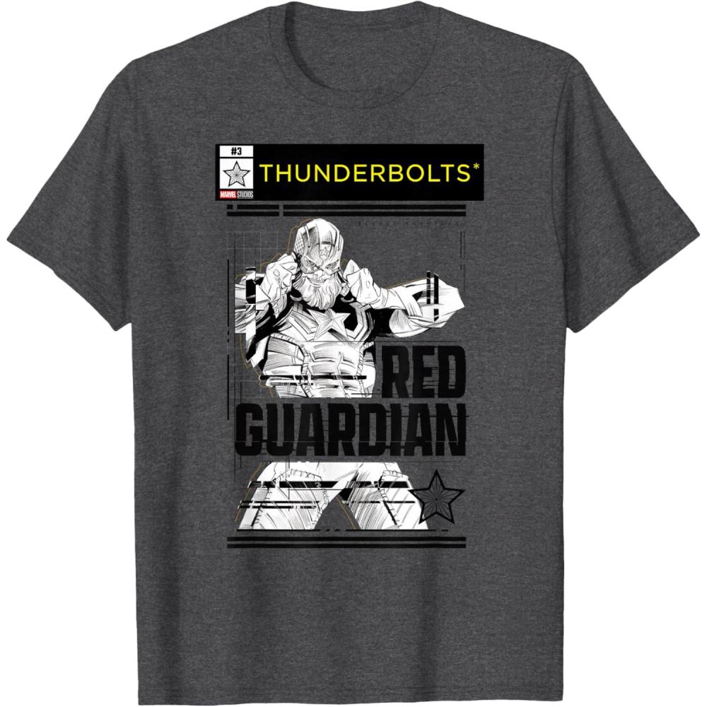 Not super. Not heroes. Not giving up. Join the most unexpected new team in the Marvel Cinematic Universe! This official Marvel tee or hoodie from Marvel Studios' blockbuster movie “Thunderbolts” features action-packed, black-and-white comic cover style art of Red Guardian, the former Russian super soldier Alexei Shostakov, with a Thunderbolts logo at the top. A great gift for a Marvel Super Heroes, Thunderbolts, or MCU fan — collect the whole team with numbered designs featuring Yelena Belova, Bucky Barnes, Taskmaster, John F. Walker, and Ghost! Planning a trip to Avengers Campus at Disney California Adventure Park or another super destination? Get multiples and wear matching Marvel's Thunderbolts t-shirts with friends and family for even more superhero-sized fun! Find it in a t-shirt, premium t-shirt, tank top, v-neck, long sleeve tee, hoodie, and sweatshirt.