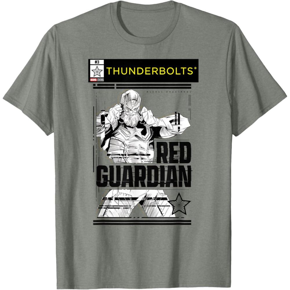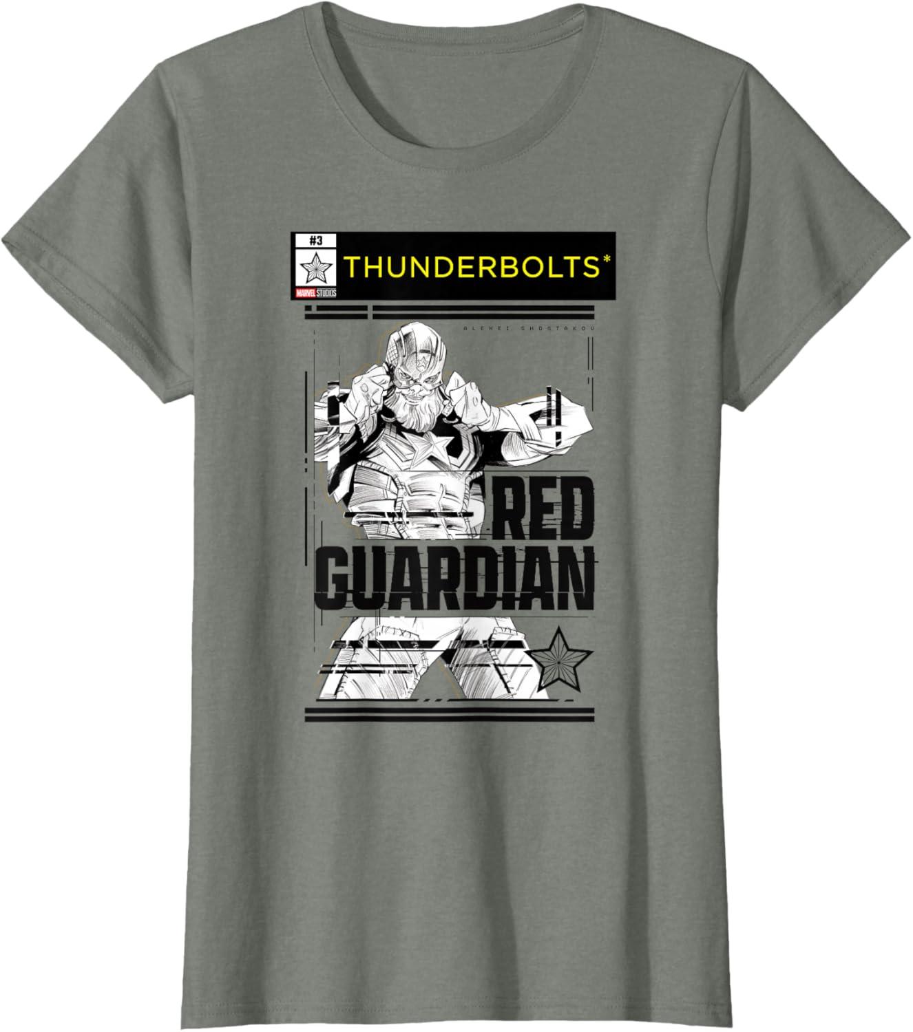 Not super. Not heroes. Not giving up. Join the most unexpected new team in the Marvel Cinematic Universe! This official Marvel tee or hoodie from Marvel Studios' blockbuster movie “Thunderbolts” features action-packed, black-and-white comic cover style art of Red Guardian, the former Russian super soldier Alexei Shostakov, with a Thunderbolts logo at the top. A great gift for a Marvel Super Heroes, Thunderbolts, or MCU fan — collect the whole team with numbered designs featuring Yelena Belova, Bucky Barnes, Taskmaster, John F. Walker, and Ghost! Planning a trip to Avengers Campus at Disney California Adventure Park or another super destination? Get multiples and wear matching Marvel's Thunderbolts t-shirts with friends and family for even more superhero-sized fun! Find it in a t-shirt, premium t-shirt, tank top, v-neck, long sleeve tee, hoodie, and sweatshirt.