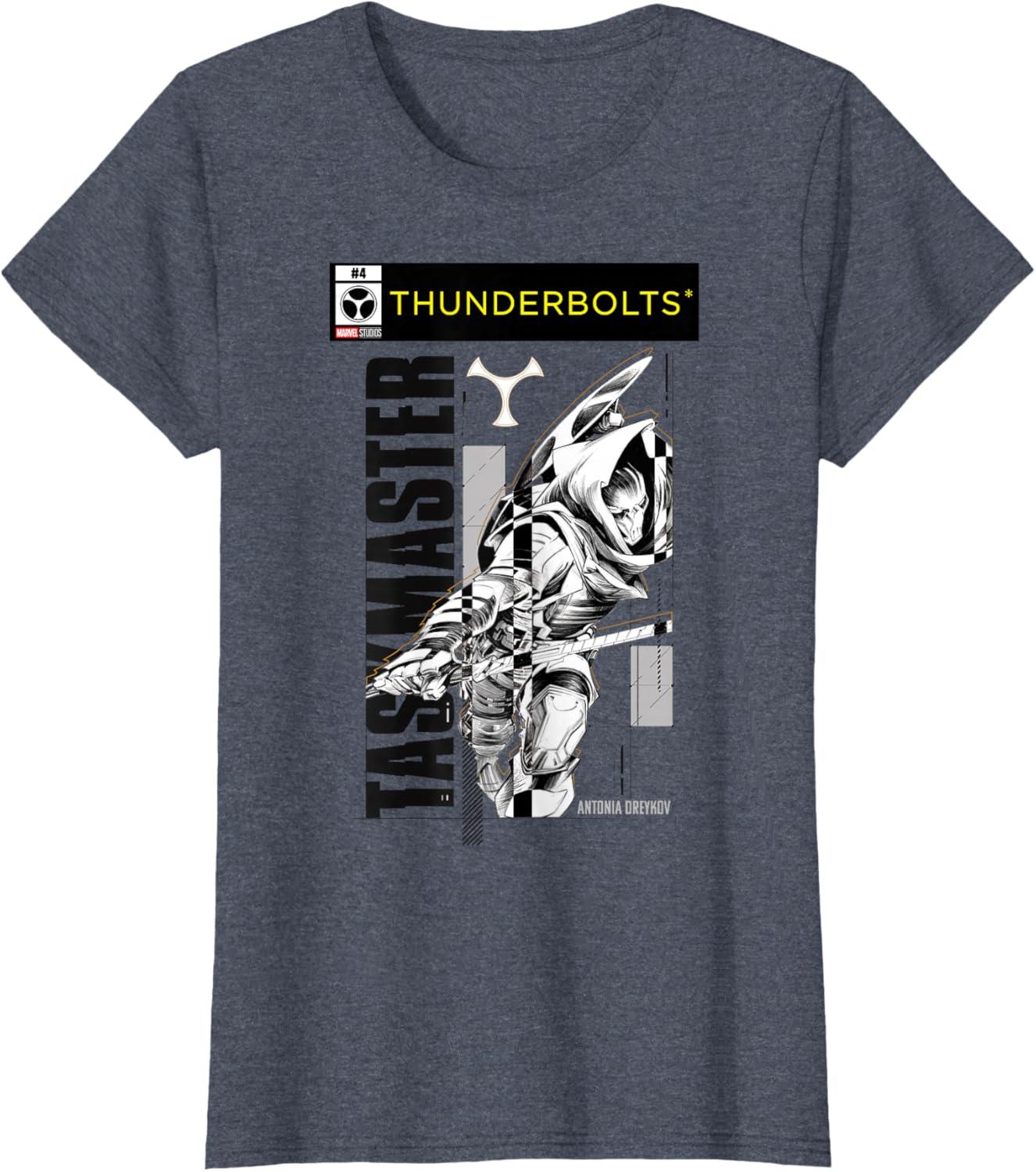 Marvel Studios Thunderbolts Taskmaster B&W Comic Cover #4 T-Shirt(Heather Blue)