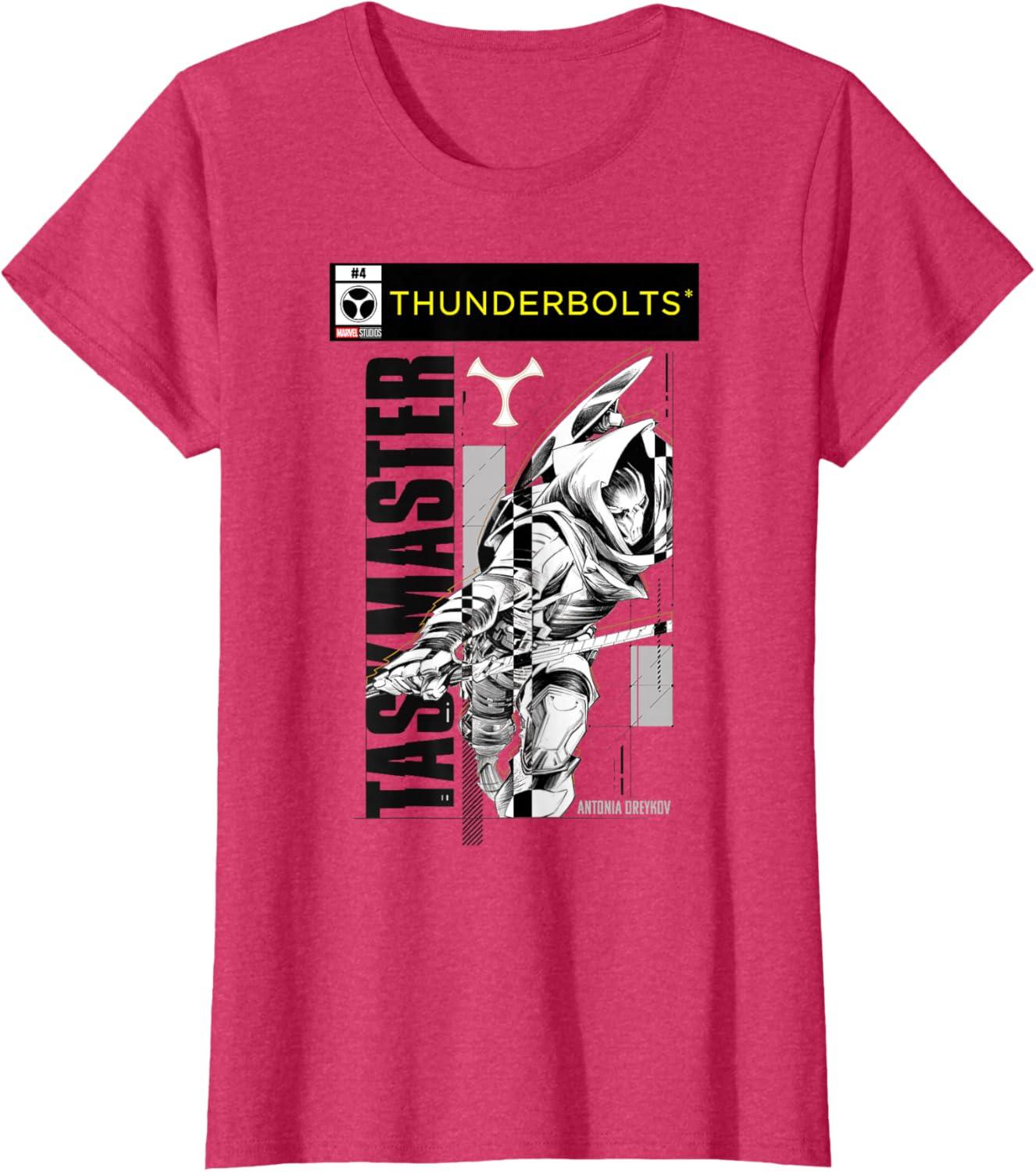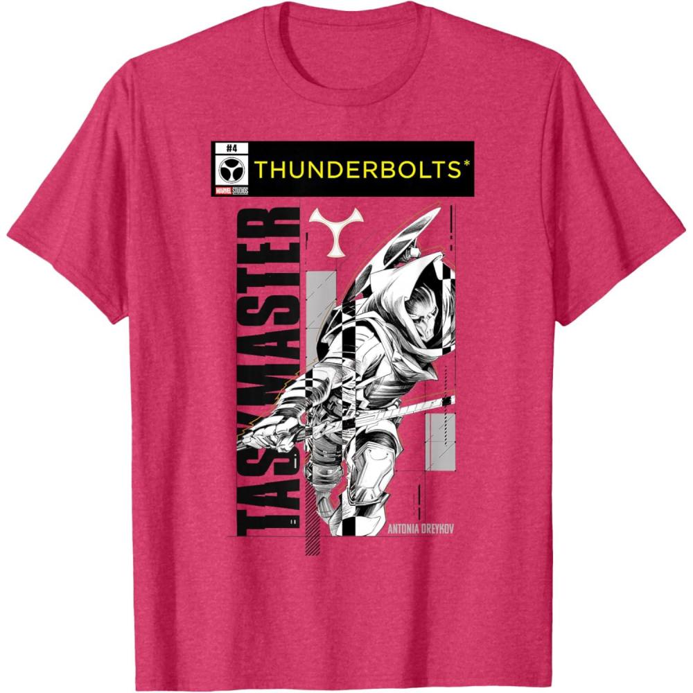 Not super. Not heroes. Not giving up. Join the most unexpected new team in the Marvel Cinematic Universe! This official Marvel tee or hoodie from Marvel Studios' blockbuster movie “Thunderbolts” features action-packed, black-and-white comic cover style art of Taskmaster, the skill-copying Antonia Dreykov, with a Thunderbolts logo at the top. A great gift for a Marvel Super Heroes, Thunderbolts, or MCU fan — collect the whole team with numbered designs featuring Yelena Belova, Bucky Barnes, Red Guardian, John F. Walker, and Ghost! Planning a trip to Avengers Campus at Disney California Adventure Park or another super destination? Get multiples and wear matching Marvel's Thunderbolts t-shirts with friends and family for even more superhero-sized fun! Find it in a t-shirt, premium t-shirt, tank top, v-neck, long sleeve tee, hoodie, and sweatshirt.