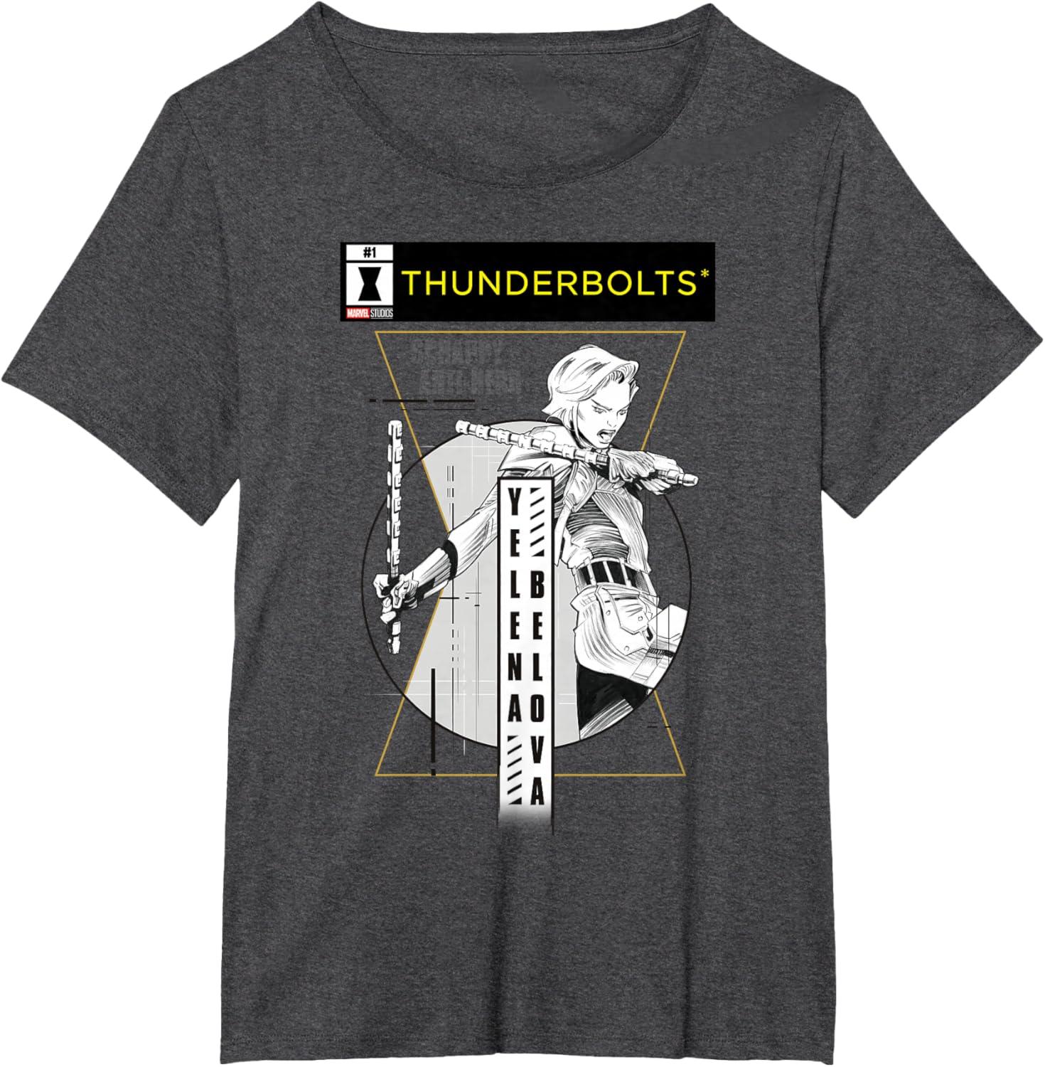 Marvel Studios Thunderbolts Yelena Belova B&W Comic Cover #1 T-Shirt(Heather Grey)