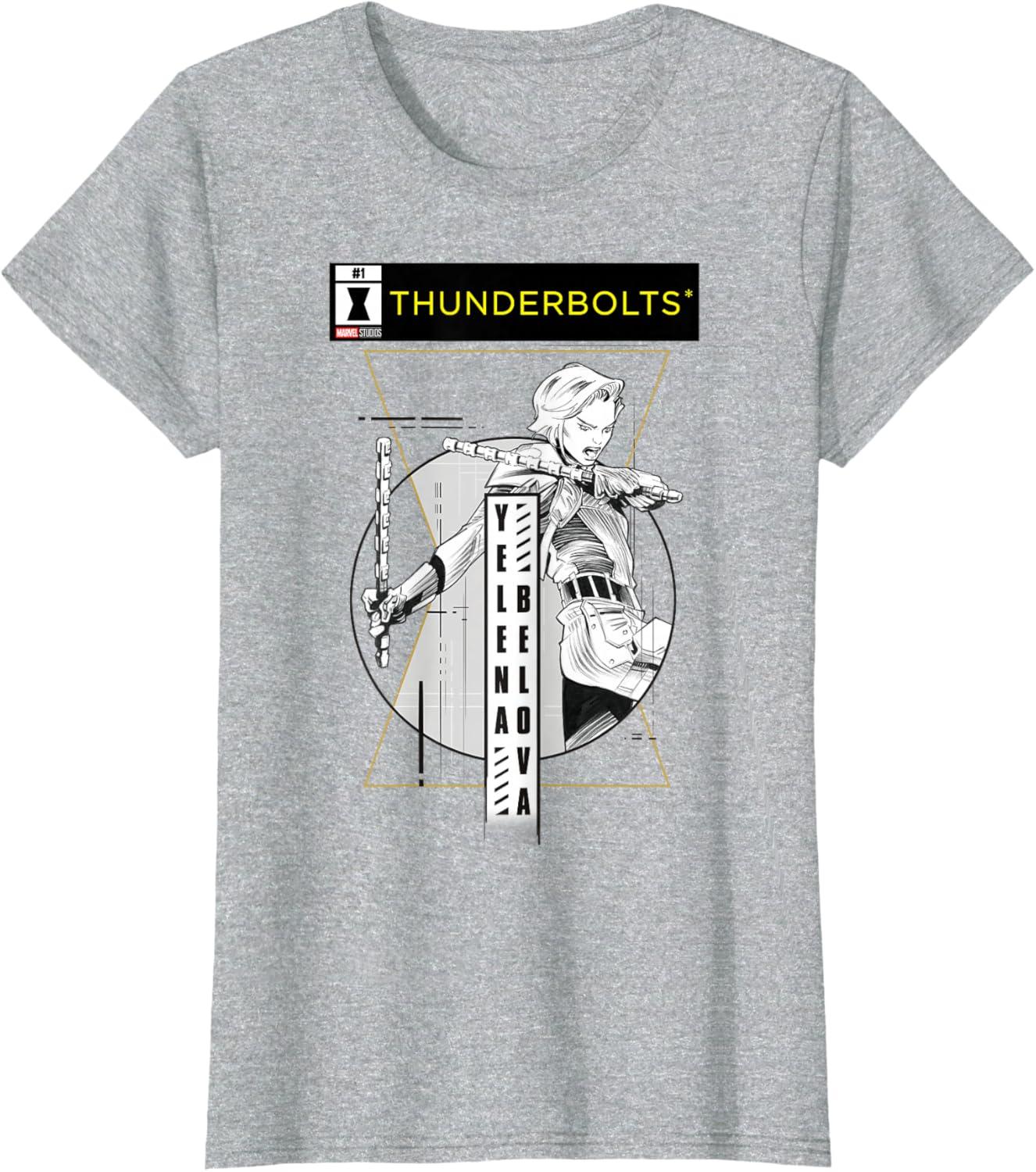 Marvel Studios Thunderbolts Yelena Belova B&W Comic Cover #1 T-Shirt(Heather Grey)