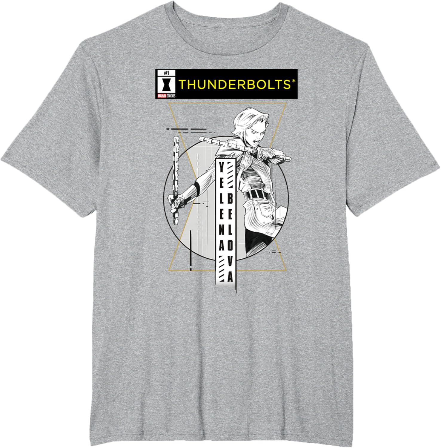 Marvel Studios Thunderbolts Yelena Belova B&W Comic Cover #1 T-Shirt(Heather Blue)