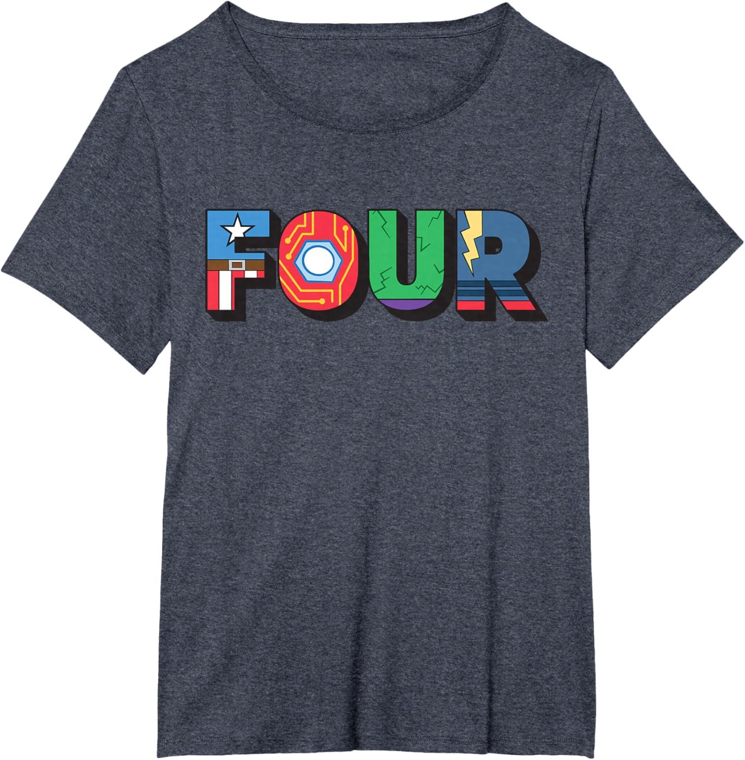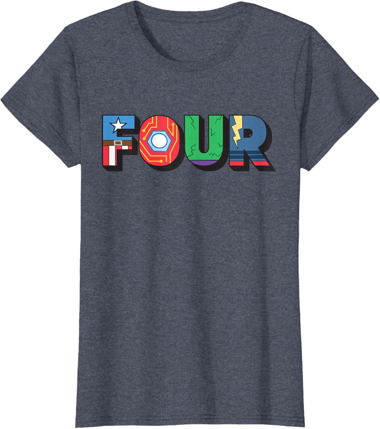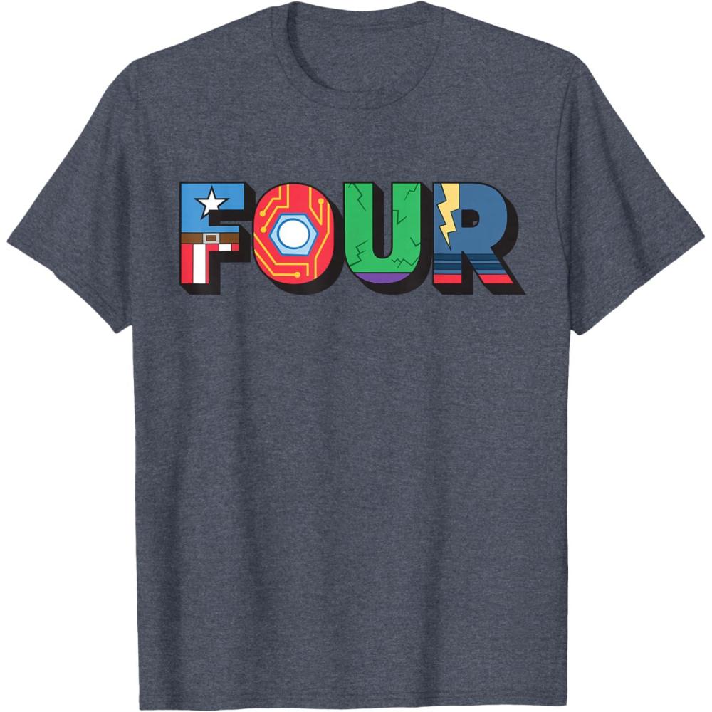 Marvel Super Heroes Avengers Numbers 4 Fourth 4th Birthday T-Shirt(Heather Grey)