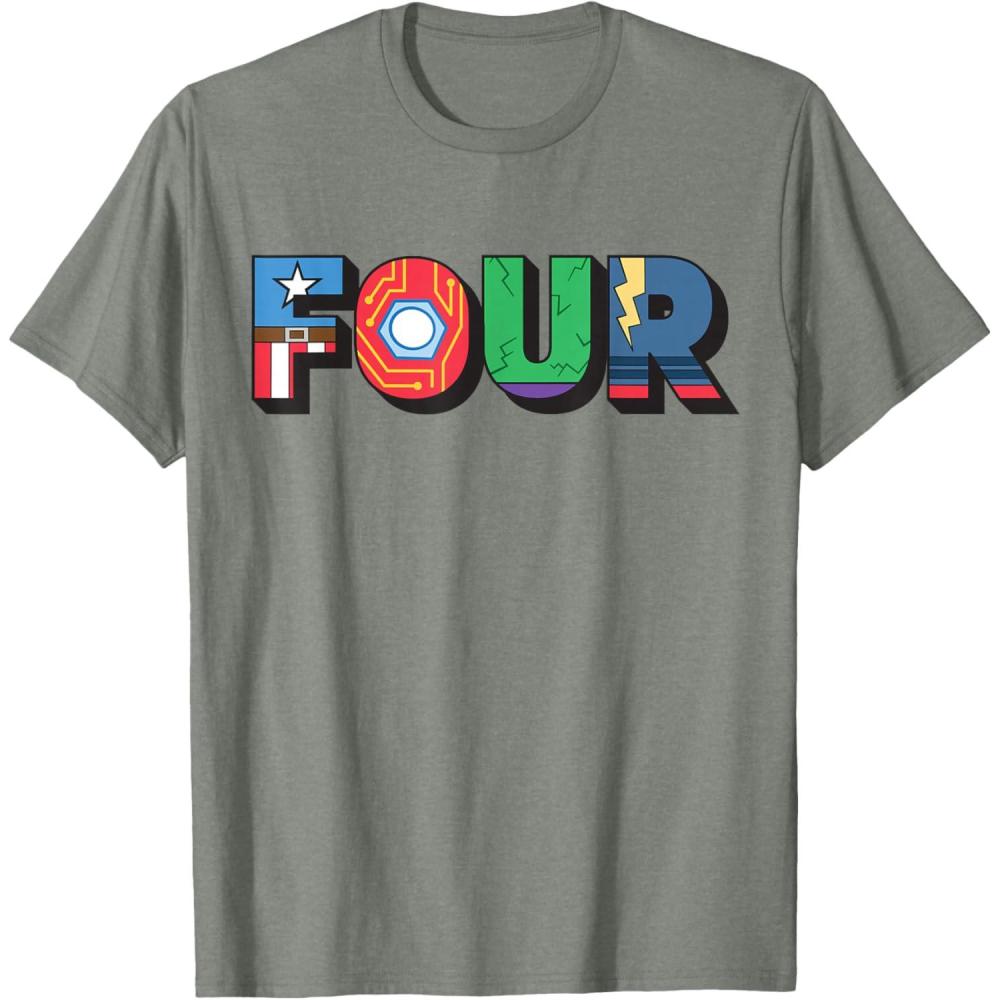 Marvel Super Heroes Avengers Numbers 4 Fourth 4th Birthday T-Shirt(Olive Heather)
