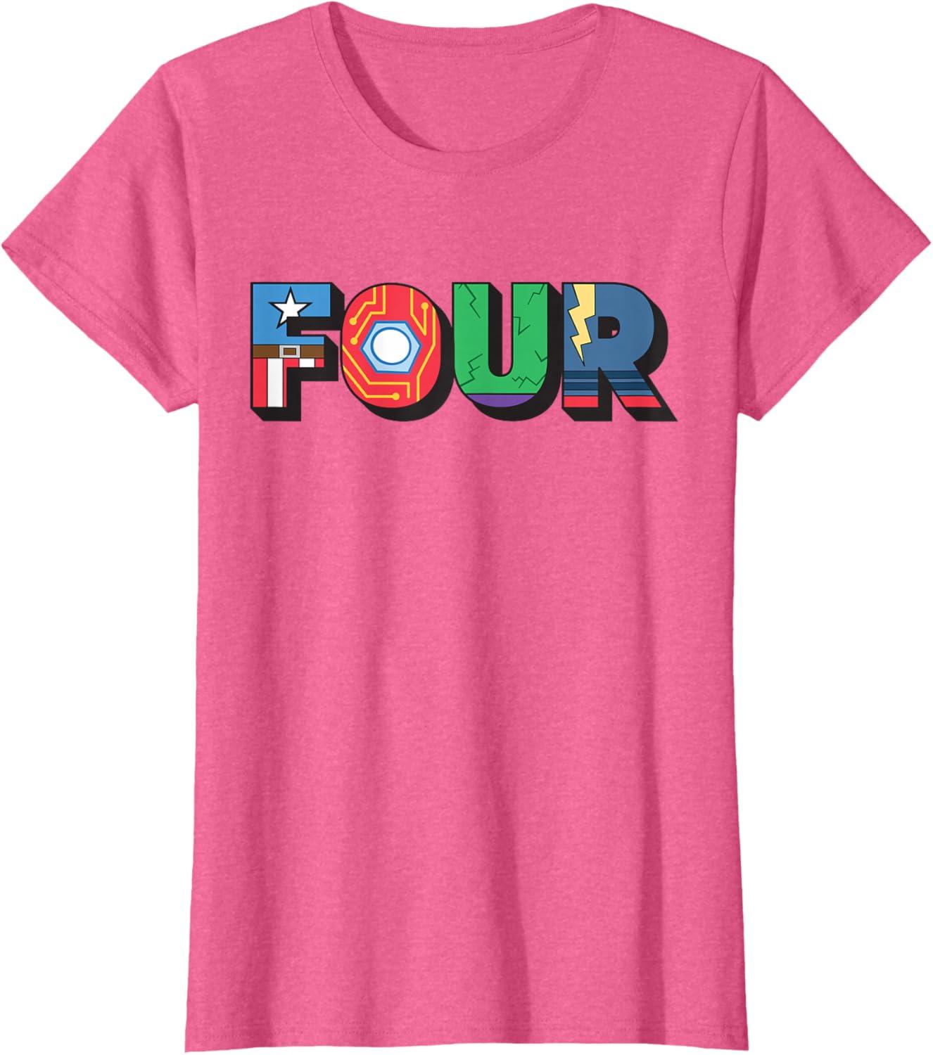 Marvel Super Heroes Avengers Numbers 4 Fourth 4th Birthday T-Shirt(Pink Heather)