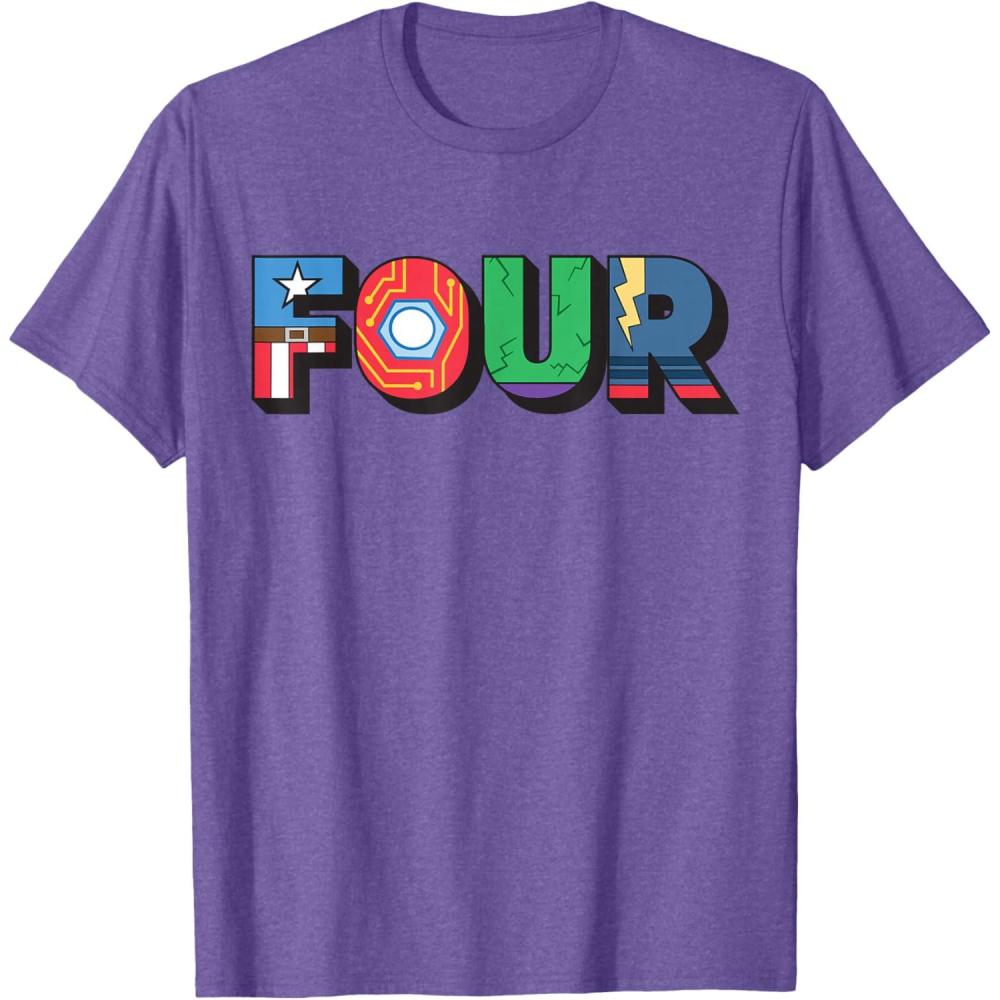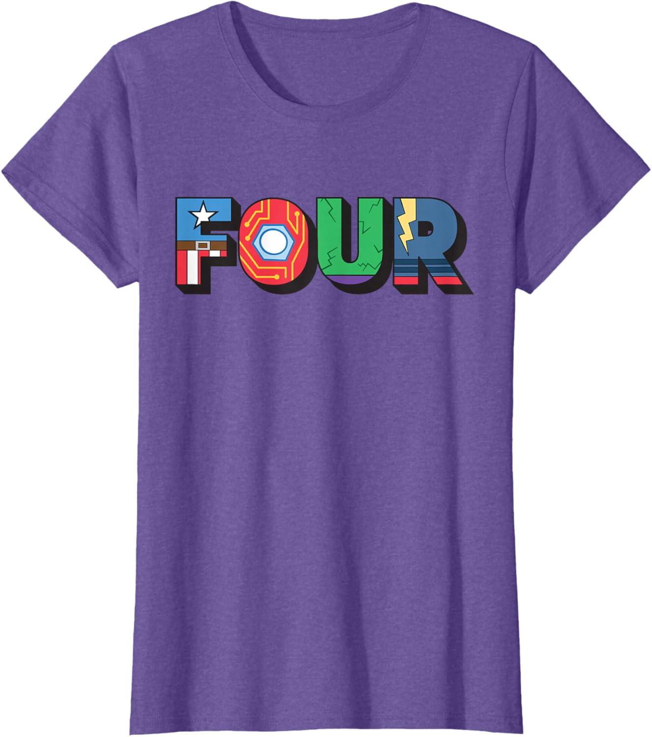 Marvel Super Heroes Avengers Numbers 4 Fourth 4th Birthday T-Shirt(Purple Heather)