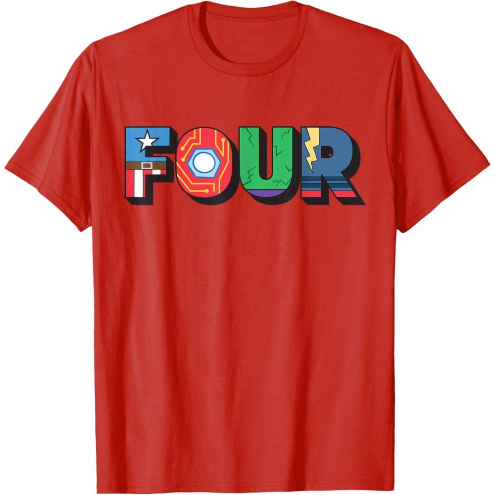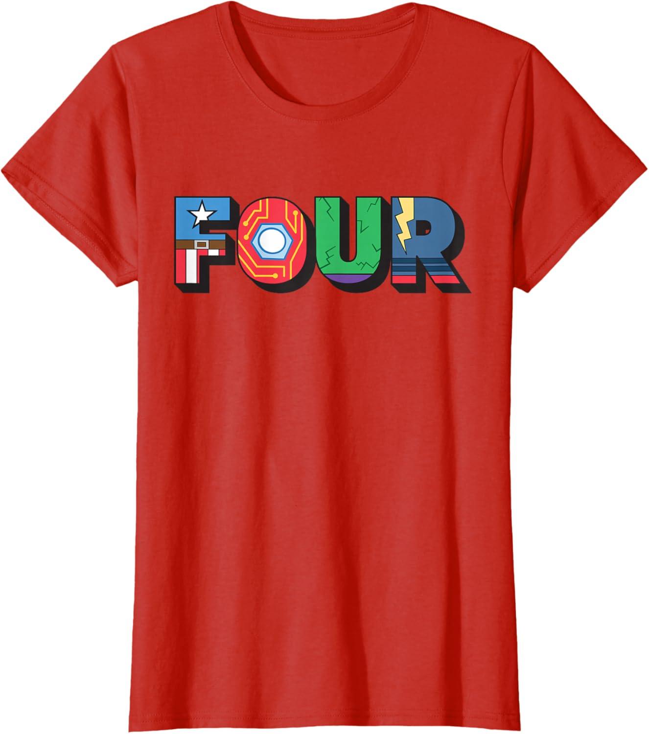 Marvel Super Heroes Avengers Numbers 4 Fourth 4th Birthday T-Shirt(Red)