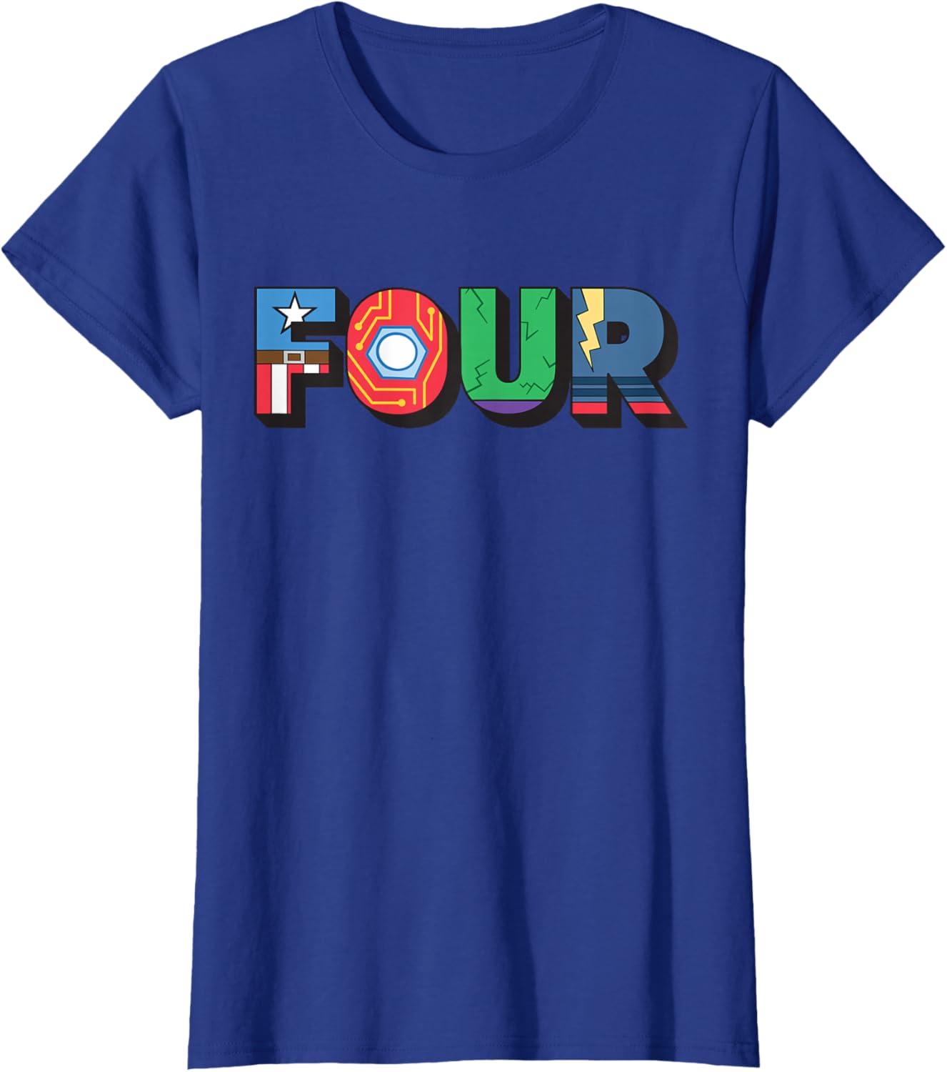 Marvel Super Heroes Avengers Numbers 4 Fourth 4th Birthday T-Shirt(Royal Blue)