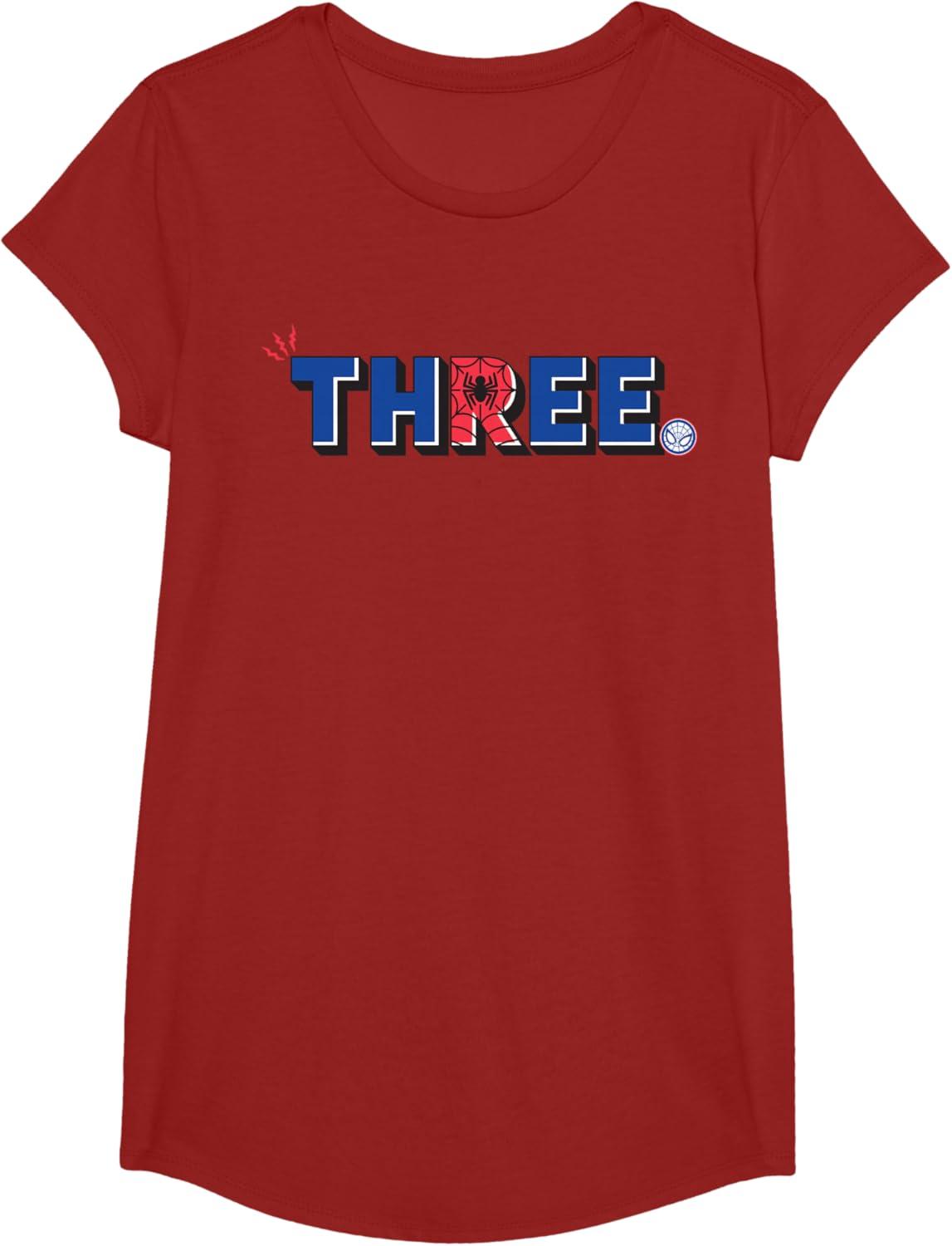 Marvel Super Heroes Spider-Man Numbers 3 Three 3rd Birthday T-Shirt(Cranberry Red)