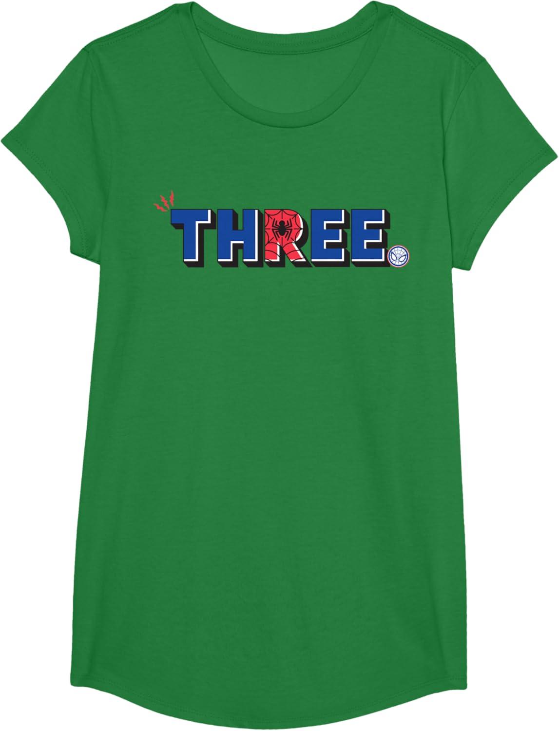 Marvel Super Heroes Spider-Man Numbers 3 Three 3rd Birthday T-Shirt(Kelly Green)