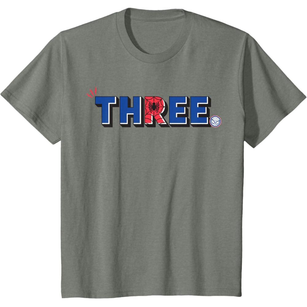 Marvel Super Heroes Spider-Man Numbers 3 Three 3rd Birthday T-Shirt(Olive Heather)