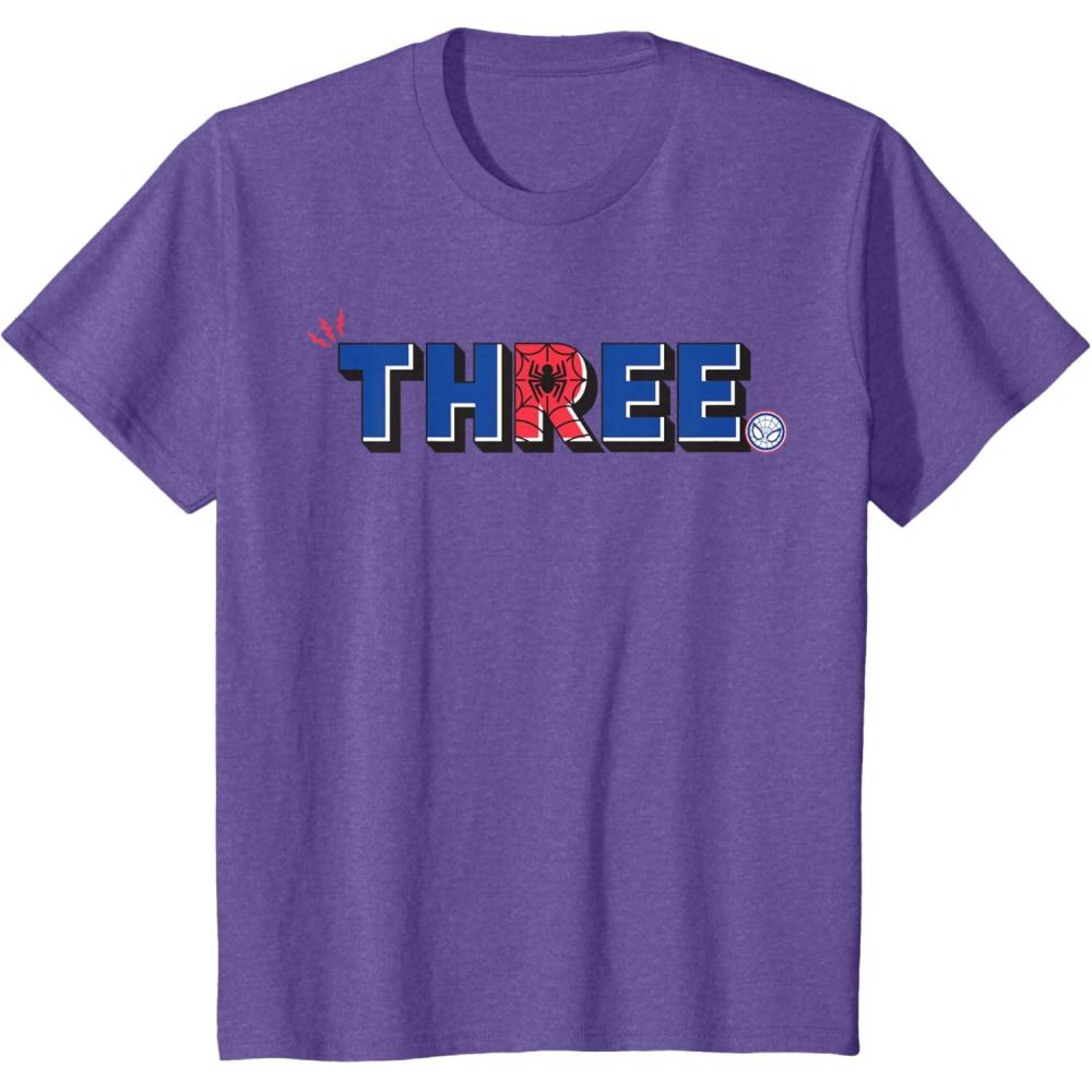Marvel Super Heroes Spider-Man Numbers 3 Three 3rd Birthday T-Shirt(Purple Heather)