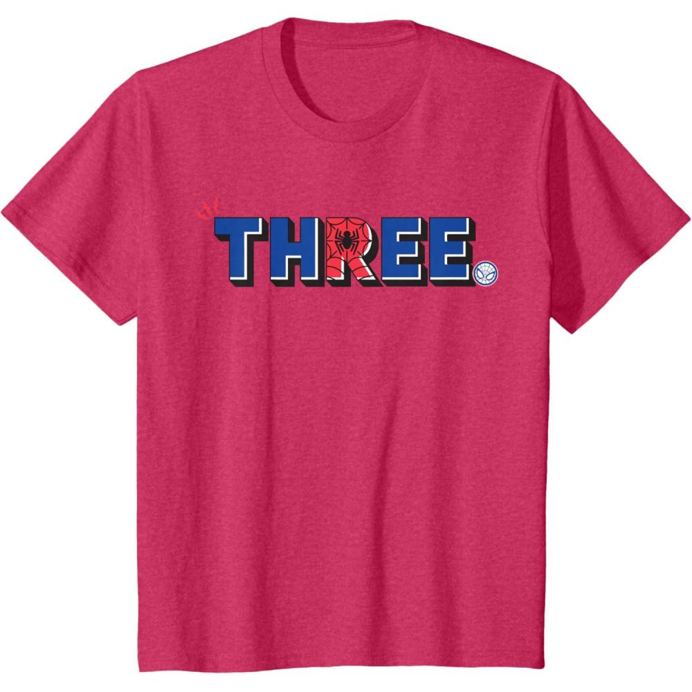 Marvel Super Heroes Spider-Man Numbers 3 Three 3rd Birthday T-Shirt(Red Heather)
