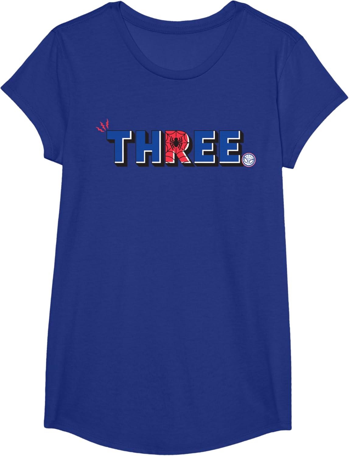 Marvel Super Heroes Spider-Man Numbers 3 Three 3rd Birthday T-Shirt(Royal Blue)