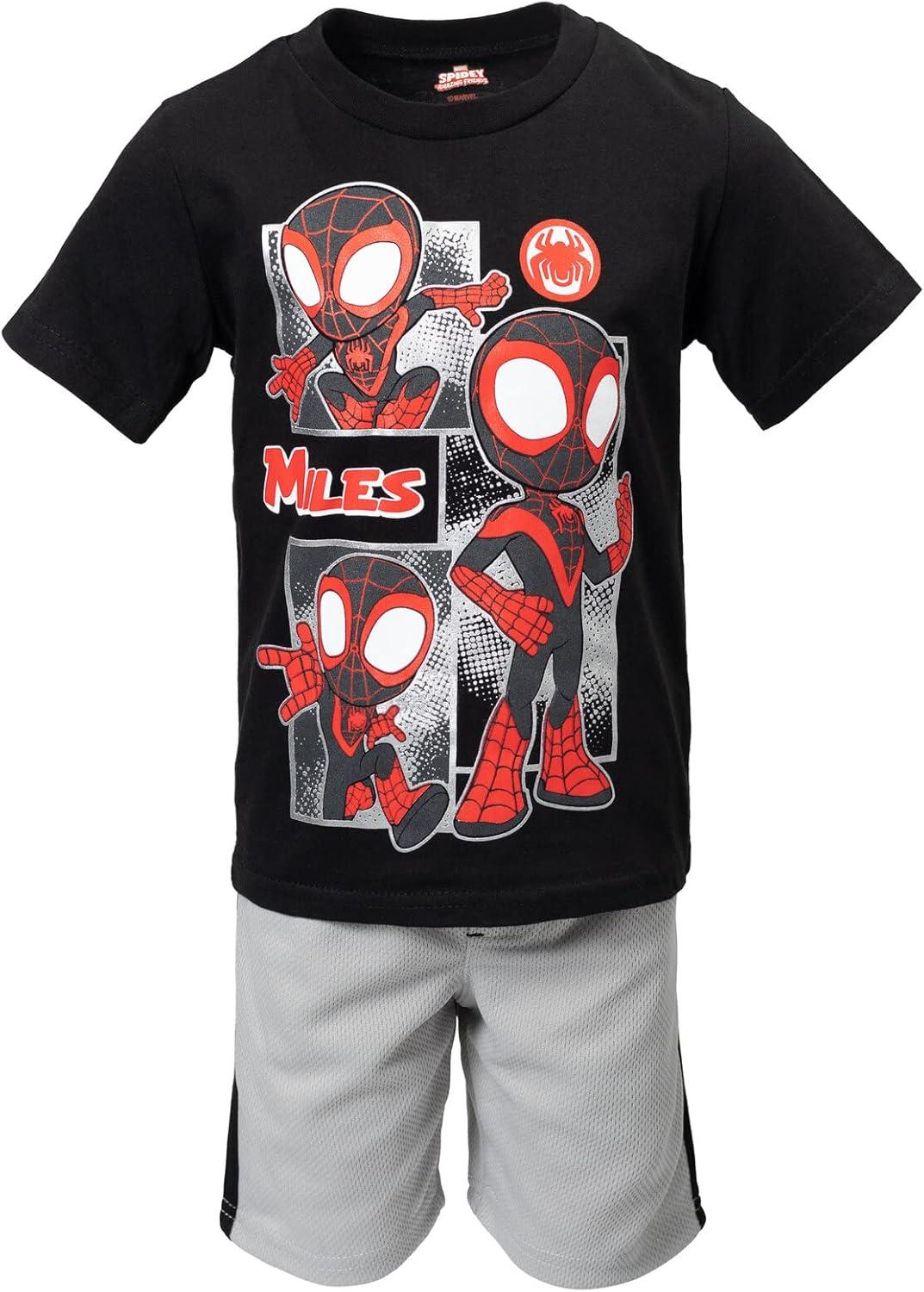 Get your little one ready to save the day with this Marvel Spidey and His Amazing Friends outfit set! With a tshirt and matching mesh shorts featuring favorite characters like Spiderman, Miles Morales, and Avengers heroes the Hulk and Iron Man, your child will feel like a true superhero. The vibrant colors and bold graphics make this set perfect for any fan of the popular animated series. Available in sizes for toddlers to big kids, this outfit is comfortable and stylish. Let your child join forces with Spiderman and other beloved characters in this must-have outfit set. Perfect for playtime or casual wear, this set is a must-have for any young superhero in training.