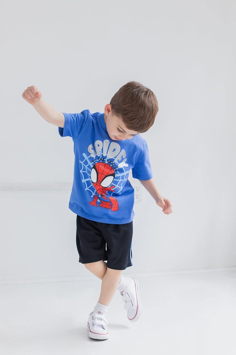 imageMarvel TShirt and Mesh Shorts Outfit Set Toddler to Big Kid Sizes 2T  1416BlueBlack