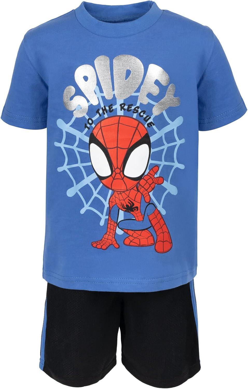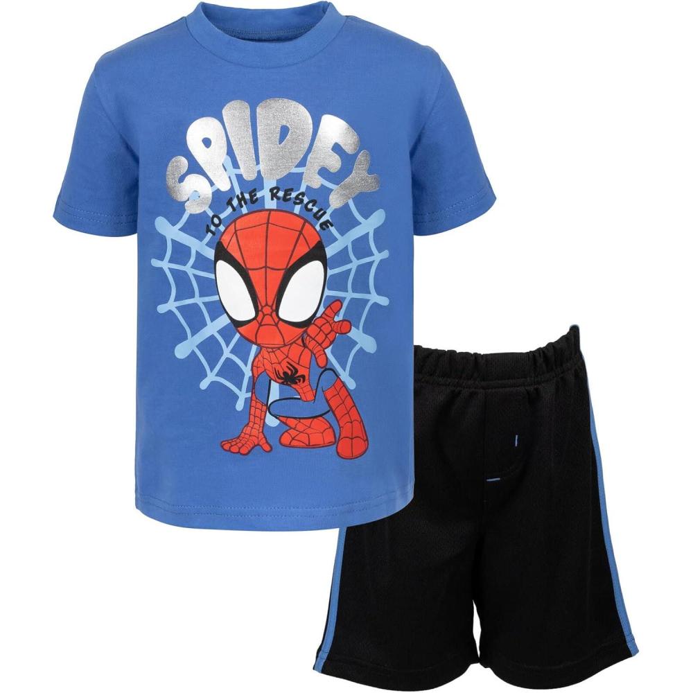 Get your little one ready to save the day with this Marvel Spidey and His Amazing Friends outfit set! With a tshirt and matching mesh shorts featuring favorite characters like Spiderman, Miles Morales, and Avengers heroes the Hulk and Iron Man, your child will feel like a true superhero. The vibrant colors and bold graphics make this set perfect for any fan of the popular animated series. Available in sizes for toddlers to big kids, this outfit is comfortable and stylish. Let your child join forces with Spiderman and other beloved characters in this must-have outfit set. Perfect for playtime or casual wear, this set is a must-have for any young superhero in training.