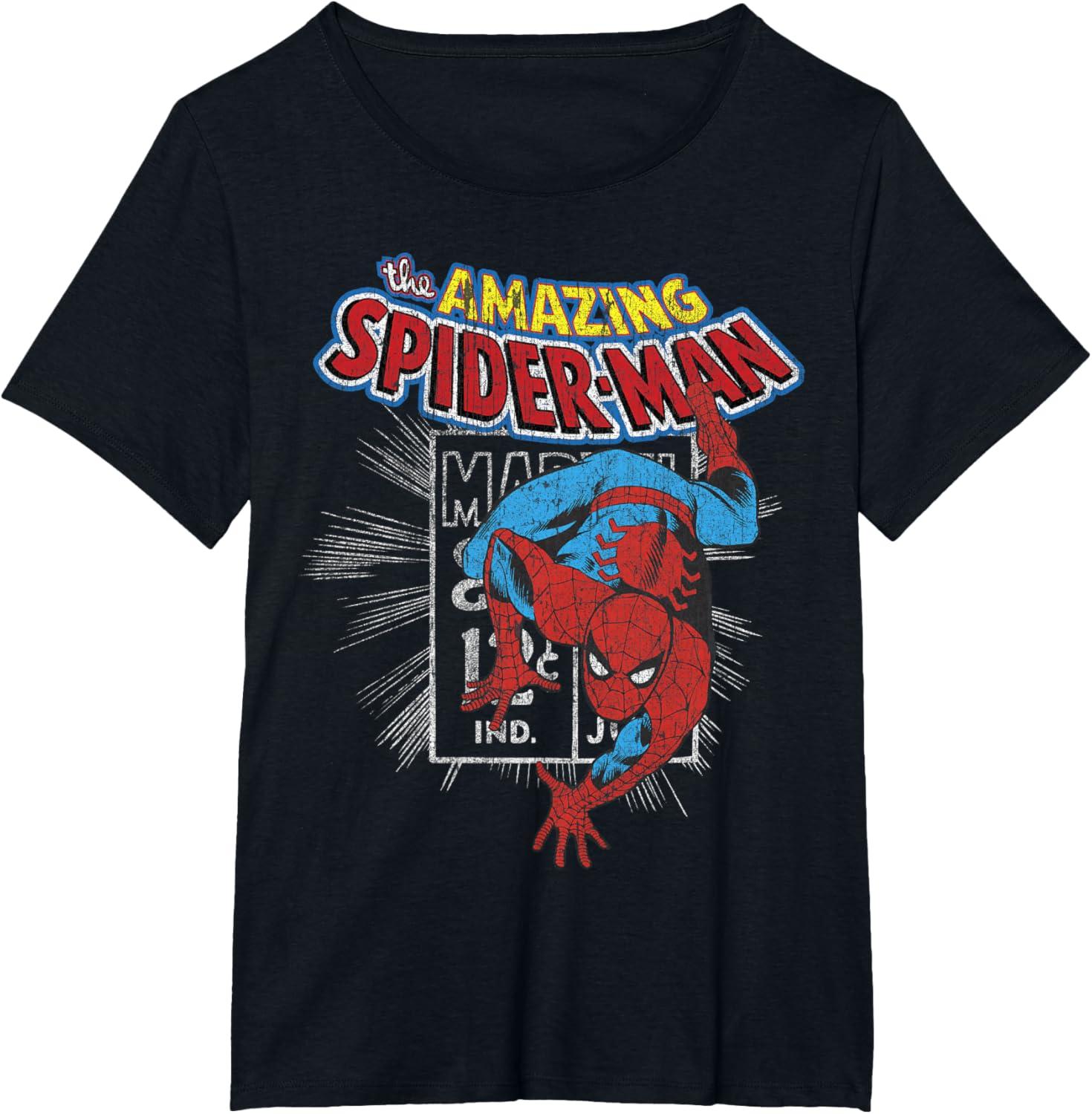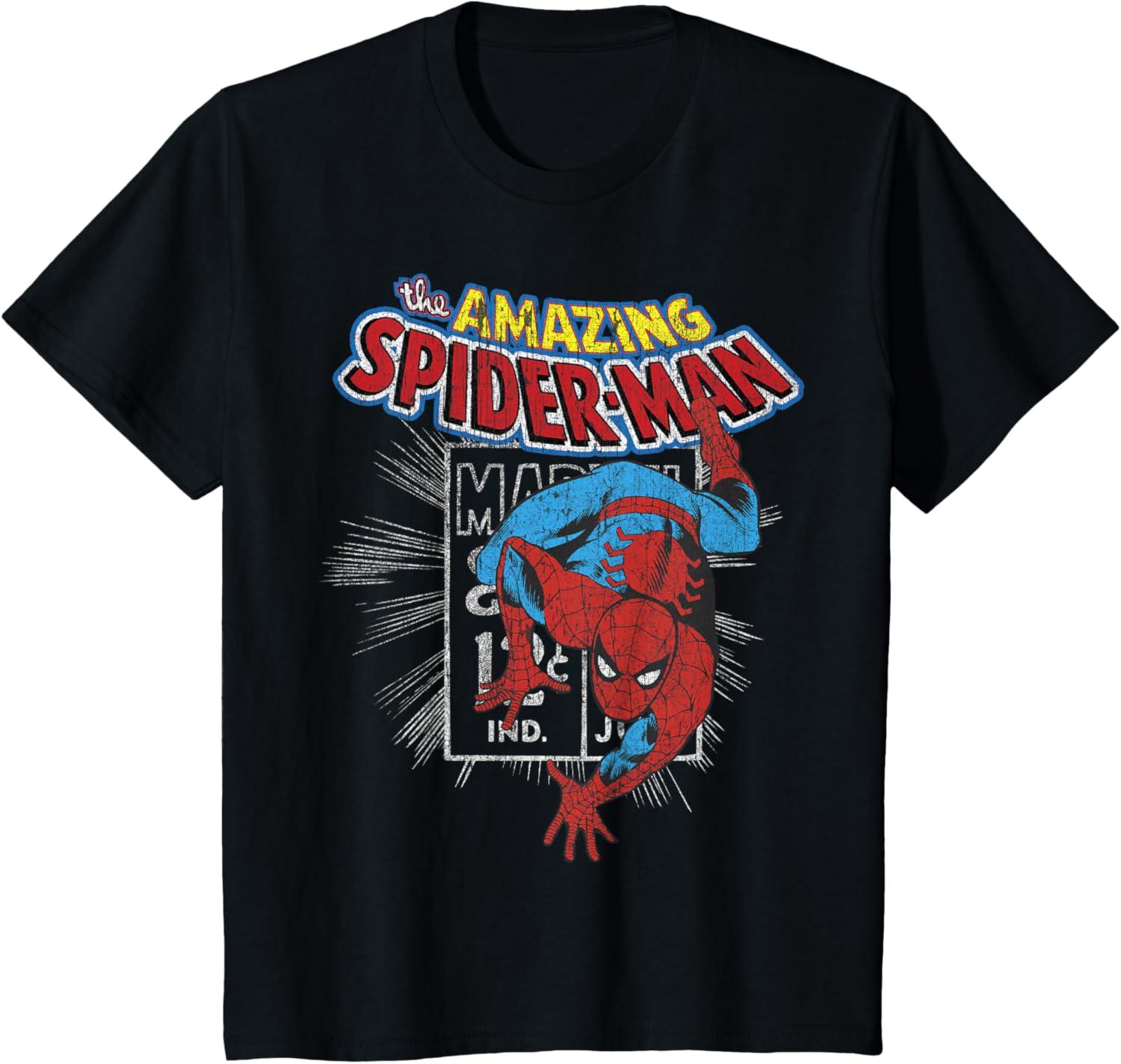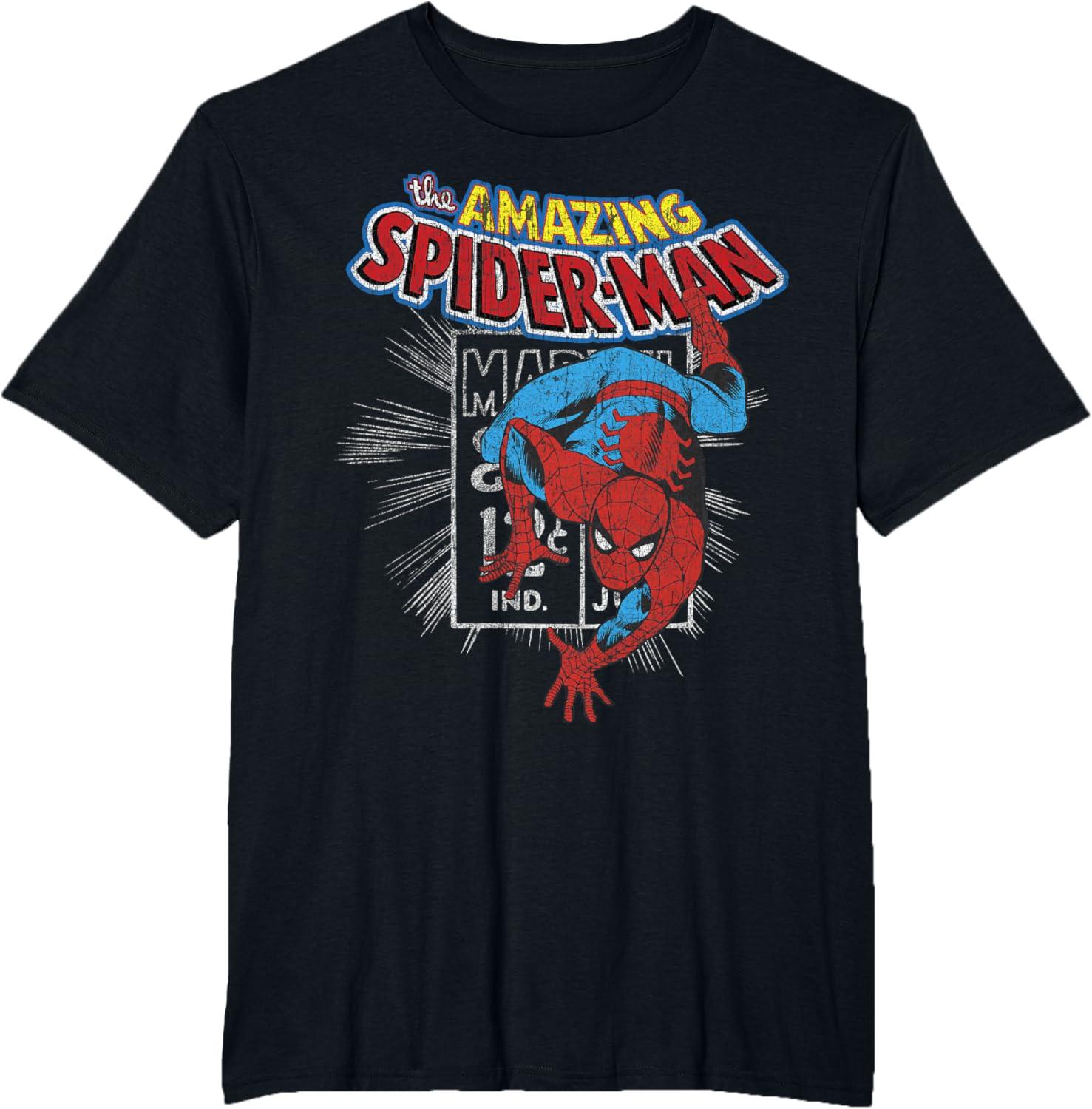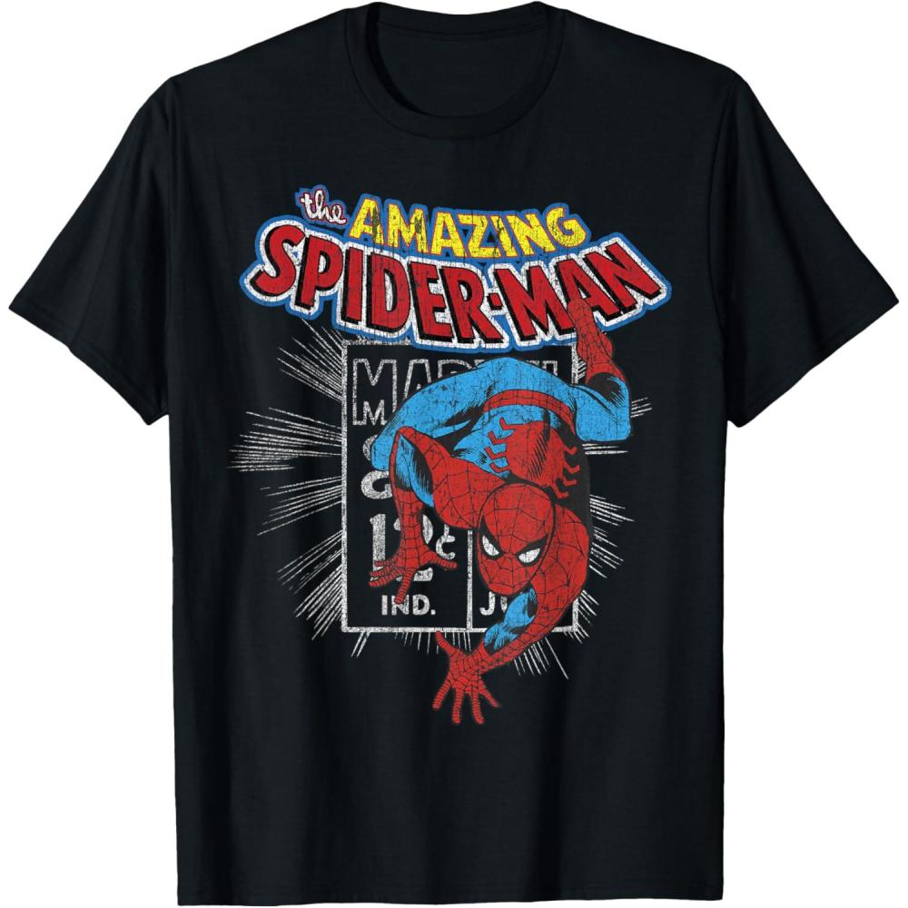 Marvel The Amazing Spider-Man Vintage Comic Poster T-Shirt(Black)