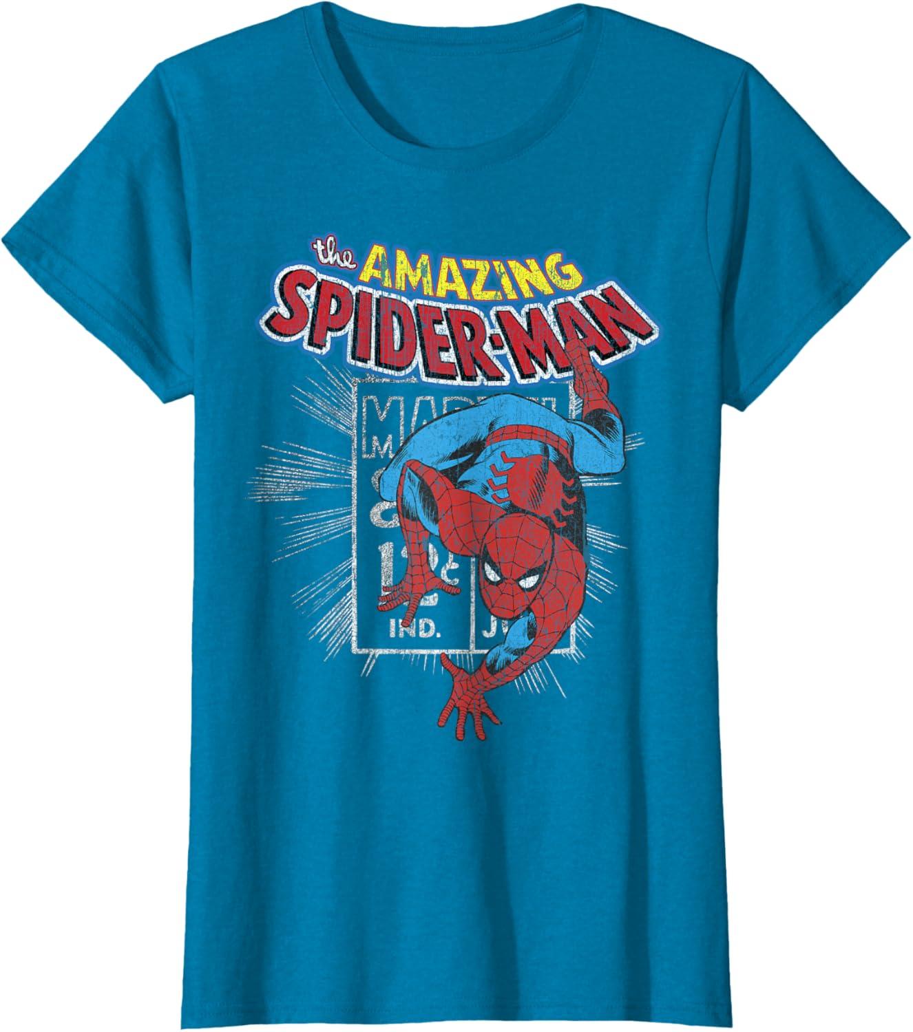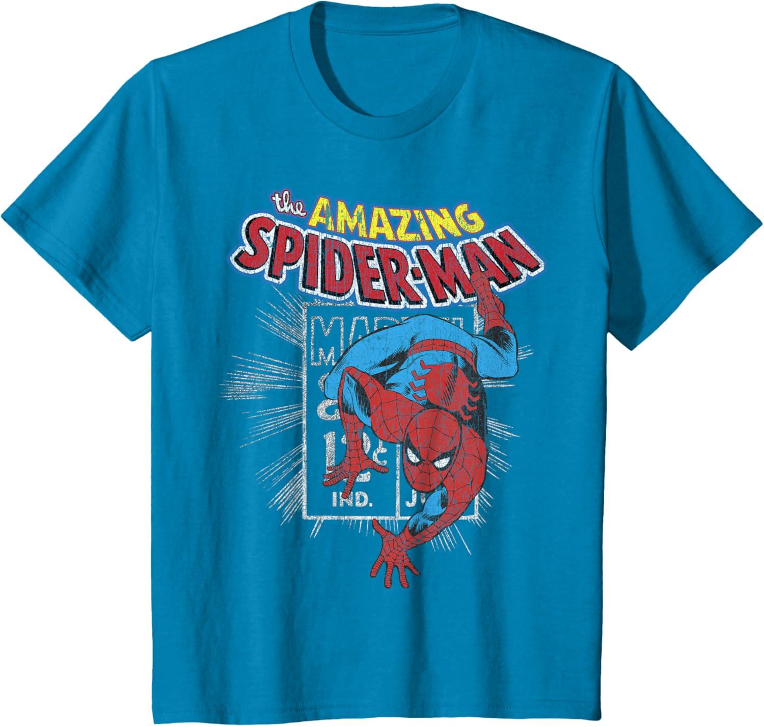Marvel The Amazing Spider-Man Vintage Comic Poster T-Shirt(Sapphire Blue)
