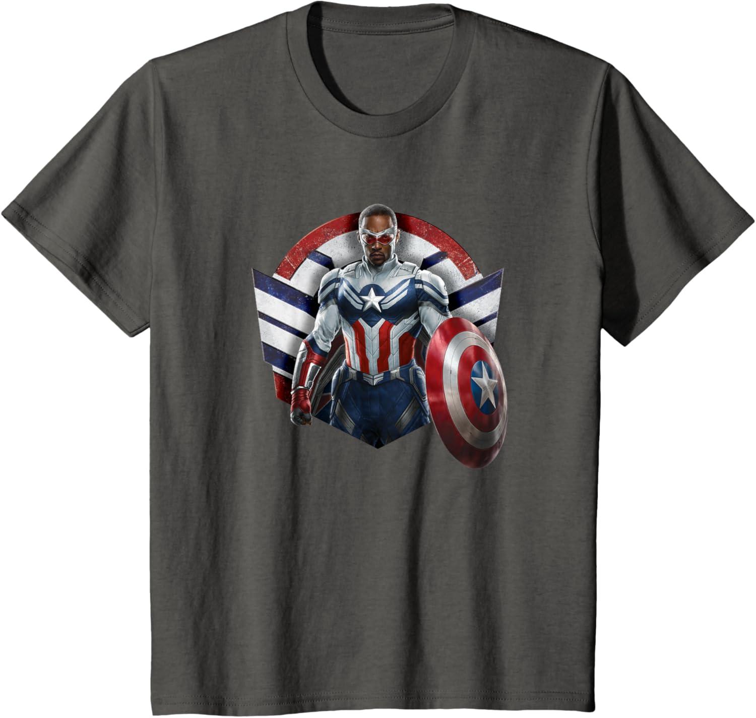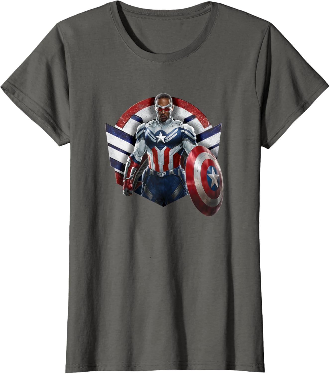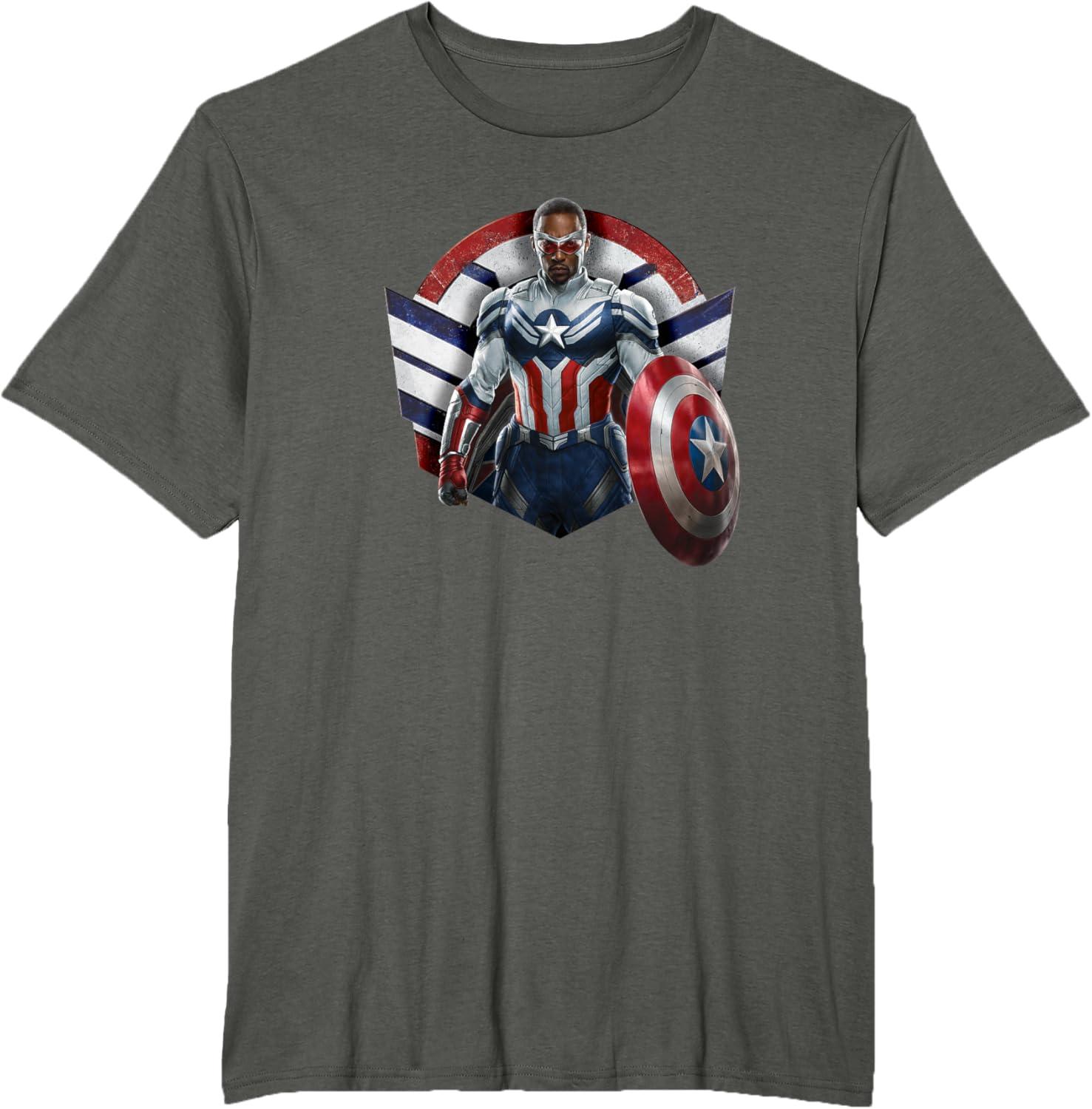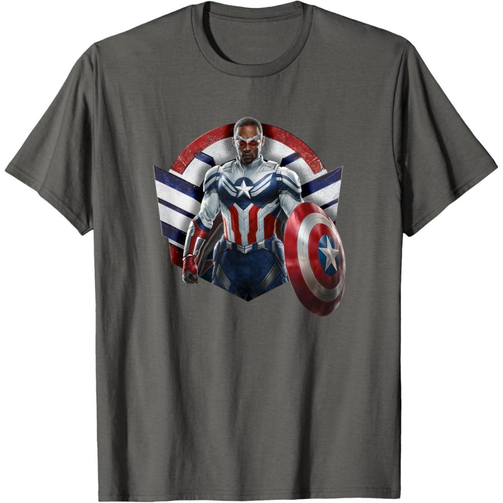 Sam Wilson has what it takes to wield the shield. Celebrate the world’s new Captain America with this bold Marvel design showcasing Sam Wilson’s Captain America Super Hero icon complete with stars and stripes in red, white, and blue. Featuring artwork from Marvel Studios’ The Falcon and The Winter Soldier, streaming on Disney+. The Falcon and The Winter Soldier is a global adventure that picks up after the events of Avengers: Endgame and follows Sam Wilson and Bucky Barnes on a journey that tests their abilities and their patience. Get this The Falcon and the Winter Soldier design in a t-shirt, premium t-shirt, tank top, v-neck, long sleeve tee, or sweatshirt, right here on Amazon.