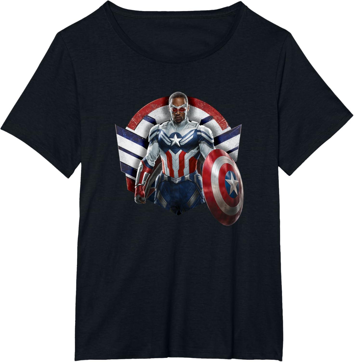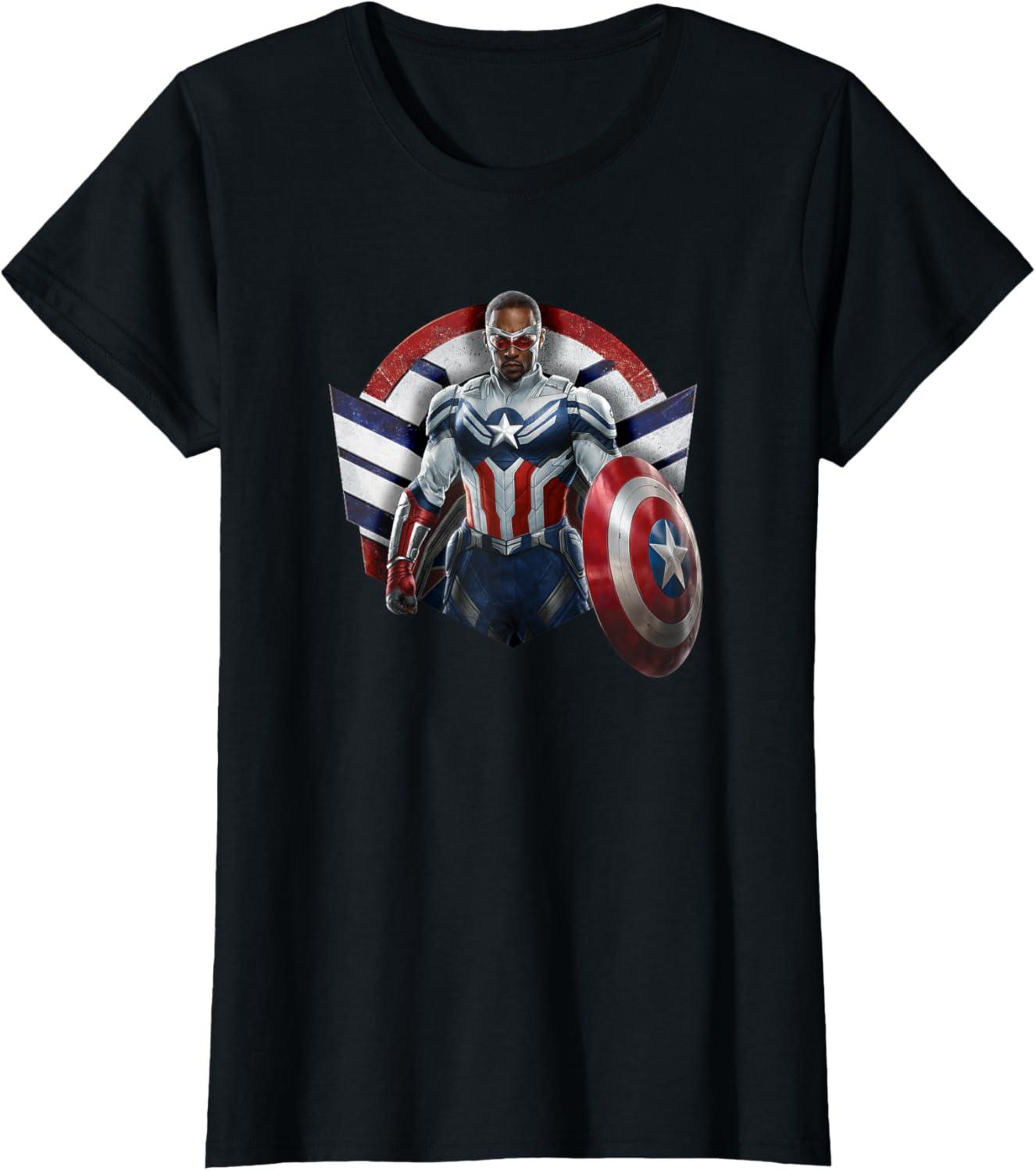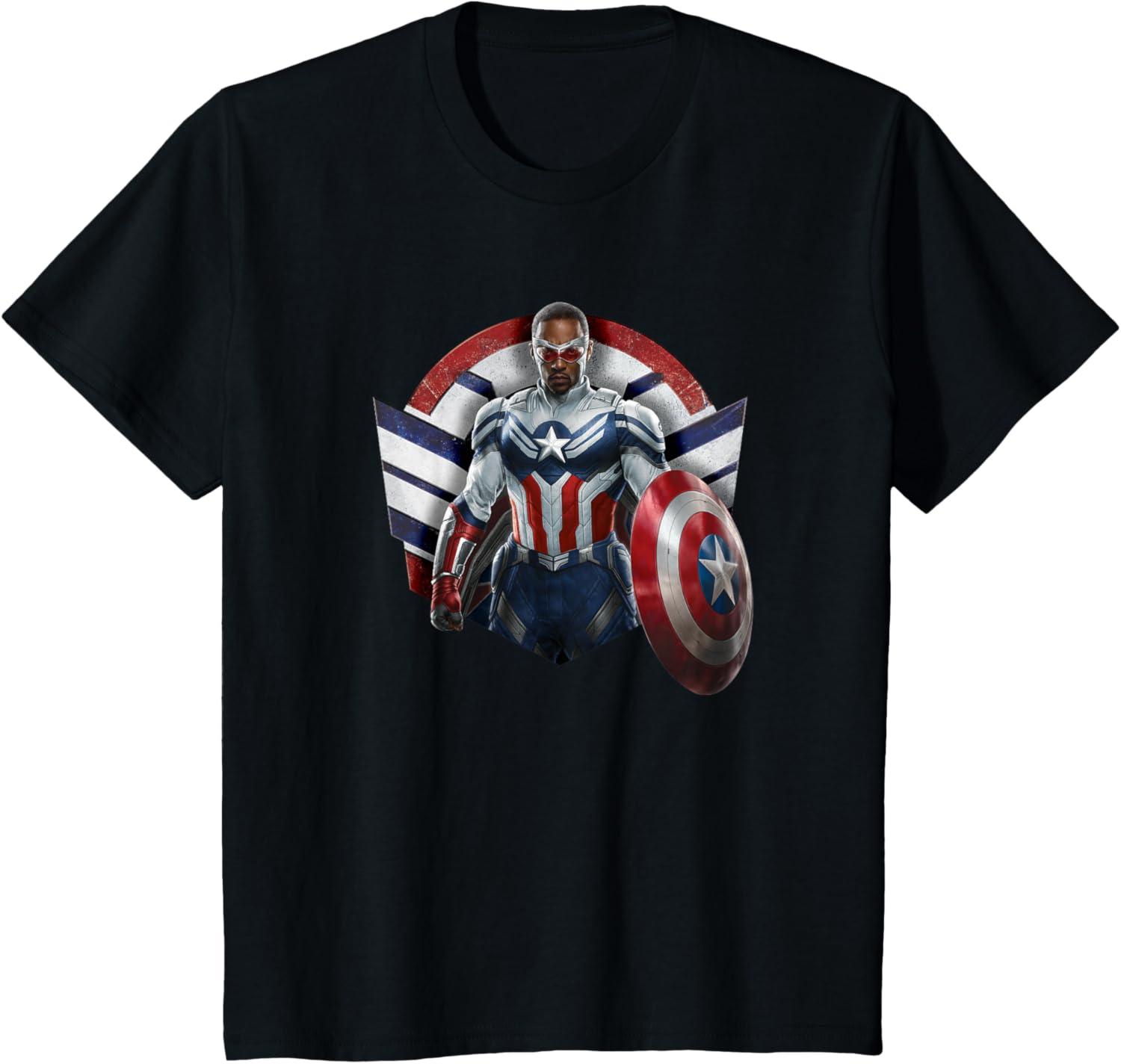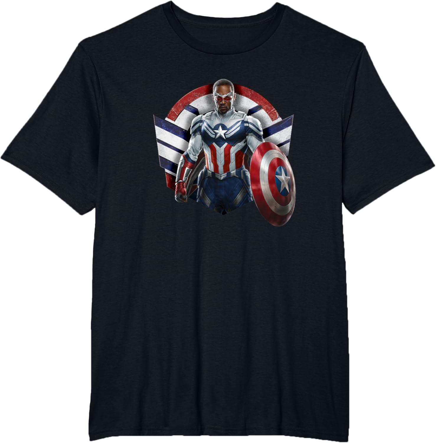 Sam Wilson has what it takes to wield the shield. Celebrate the world’s new Captain America with this bold Marvel design showcasing Sam Wilson’s Captain America Super Hero icon complete with stars and stripes in red, white, and blue. Featuring artwork from Marvel Studios’ The Falcon and The Winter Soldier, streaming on Disney+. The Falcon and The Winter Soldier is a global adventure that picks up after the events of Avengers: Endgame and follows Sam Wilson and Bucky Barnes on a journey that tests their abilities and their patience. Get this The Falcon and the Winter Soldier design in a t-shirt, premium t-shirt, tank top, v-neck, long sleeve tee, or sweatshirt, right here on Amazon.