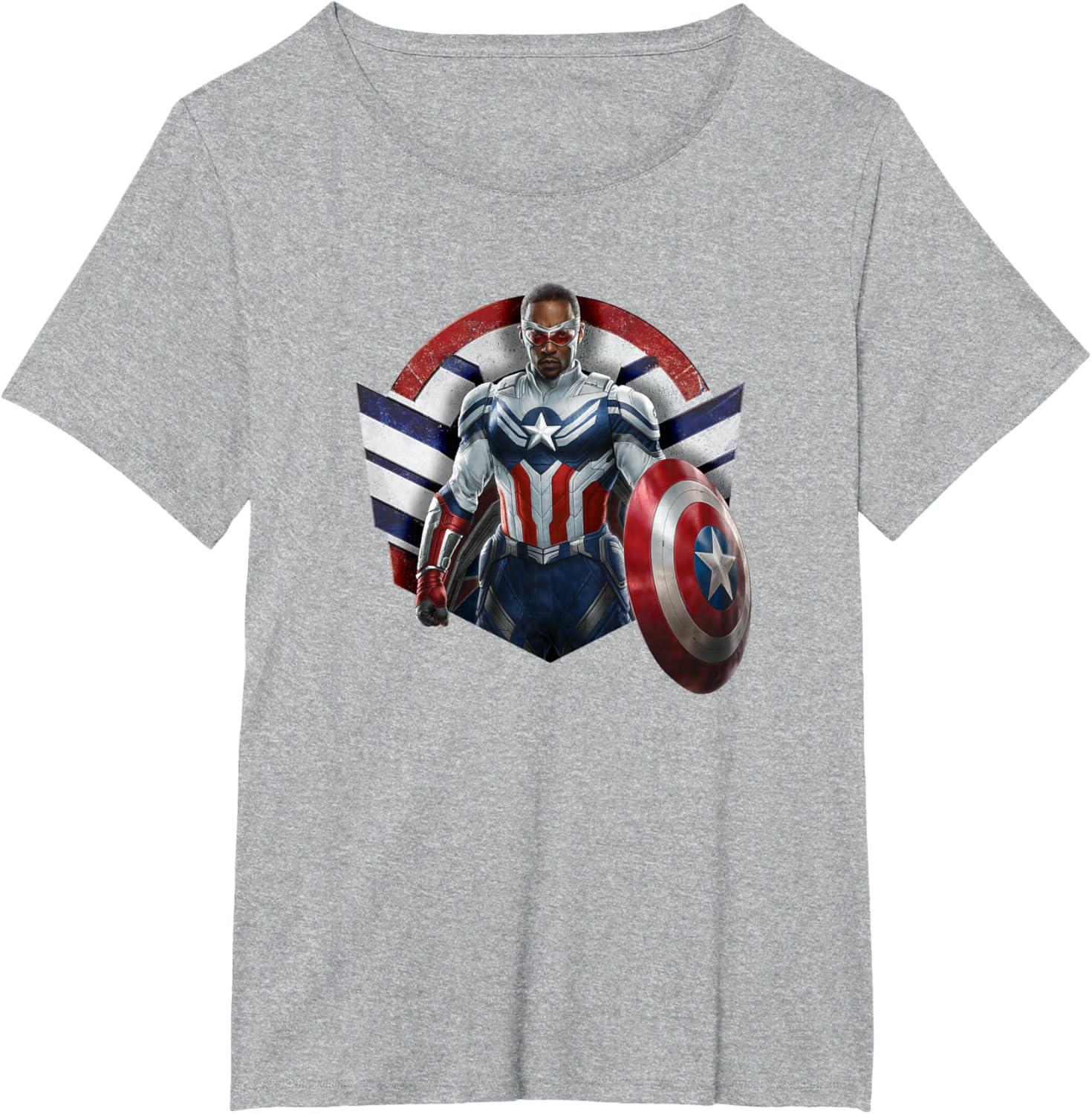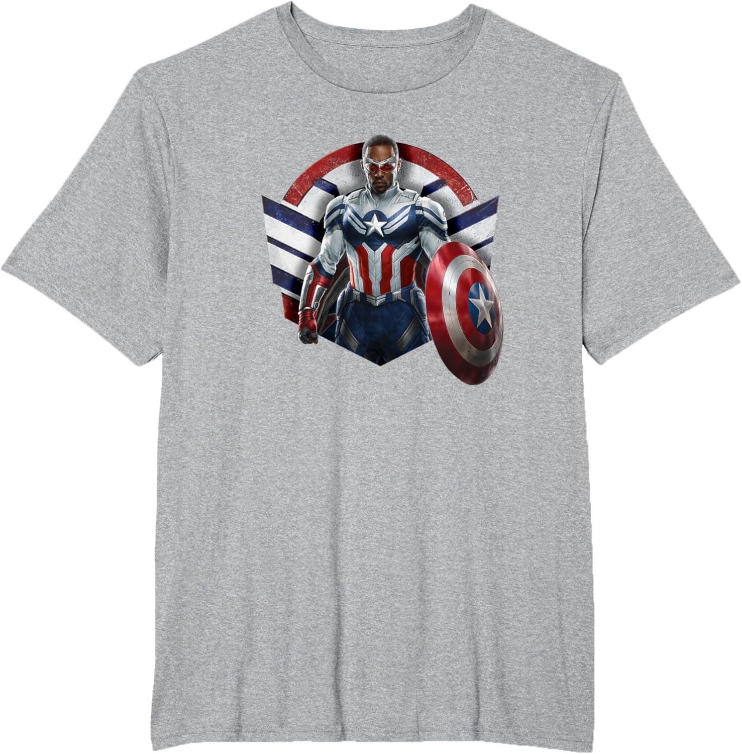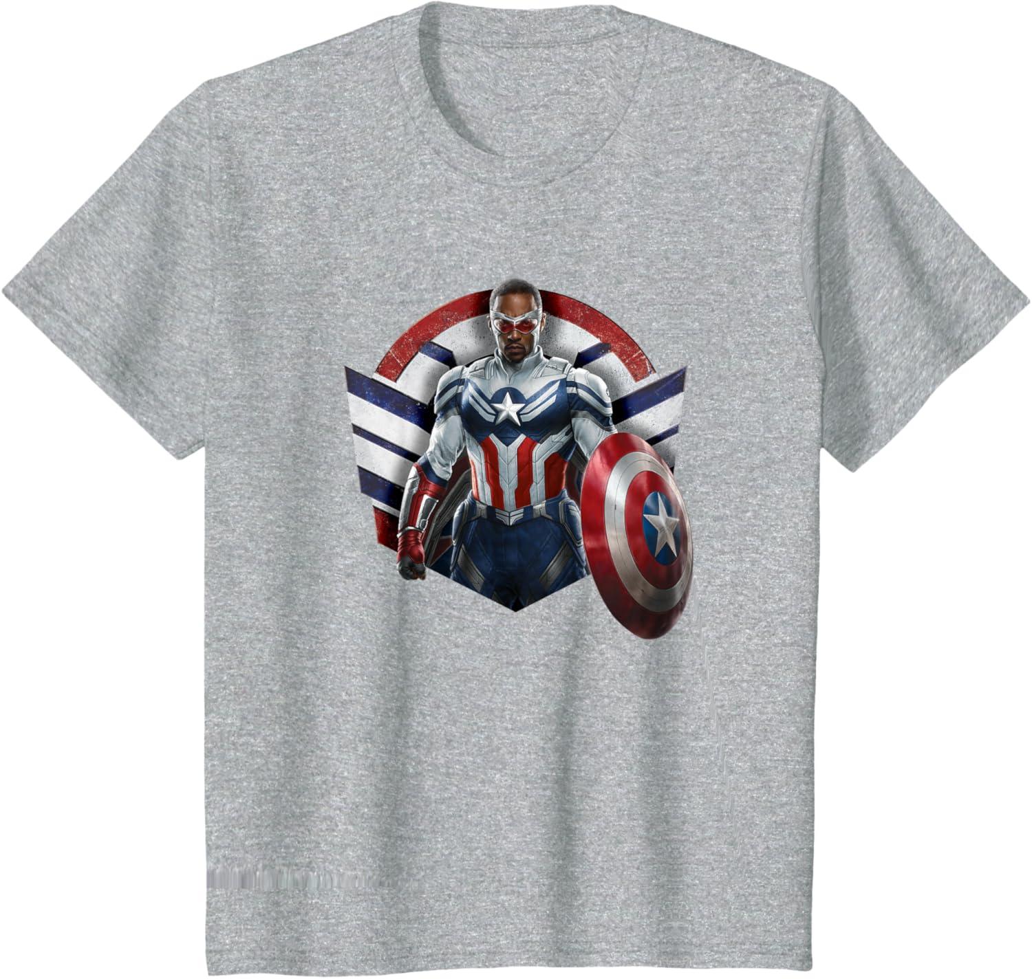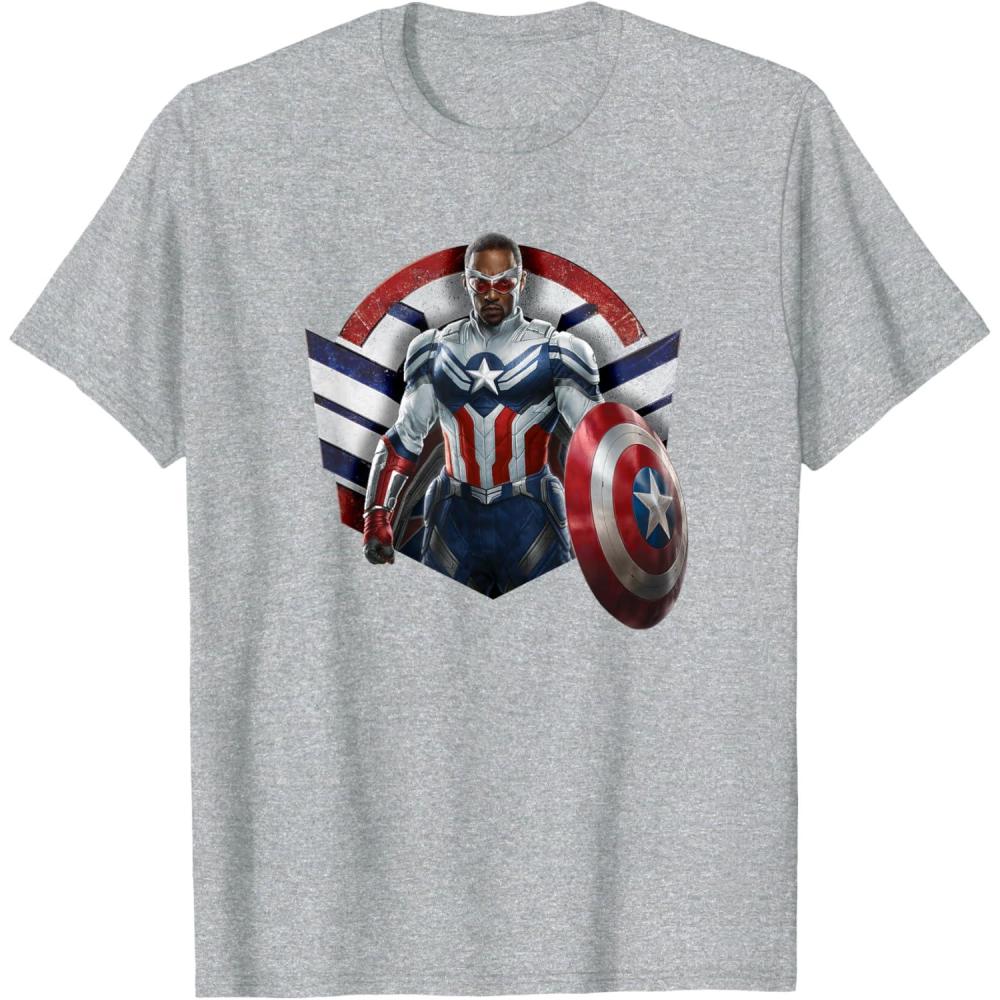 Sam Wilson has what it takes to wield the shield. Celebrate the world’s new Captain America with this bold Marvel design showcasing Sam Wilson’s Captain America Super Hero icon complete with stars and stripes in red, white, and blue. Featuring artwork from Marvel Studios’ The Falcon and The Winter Soldier, streaming on Disney+. The Falcon and The Winter Soldier is a global adventure that picks up after the events of Avengers: Endgame and follows Sam Wilson and Bucky Barnes on a journey that tests their abilities and their patience. Get this The Falcon and the Winter Soldier design in a t-shirt, premium t-shirt, tank top, v-neck, long sleeve tee, or sweatshirt, right here on Amazon.
