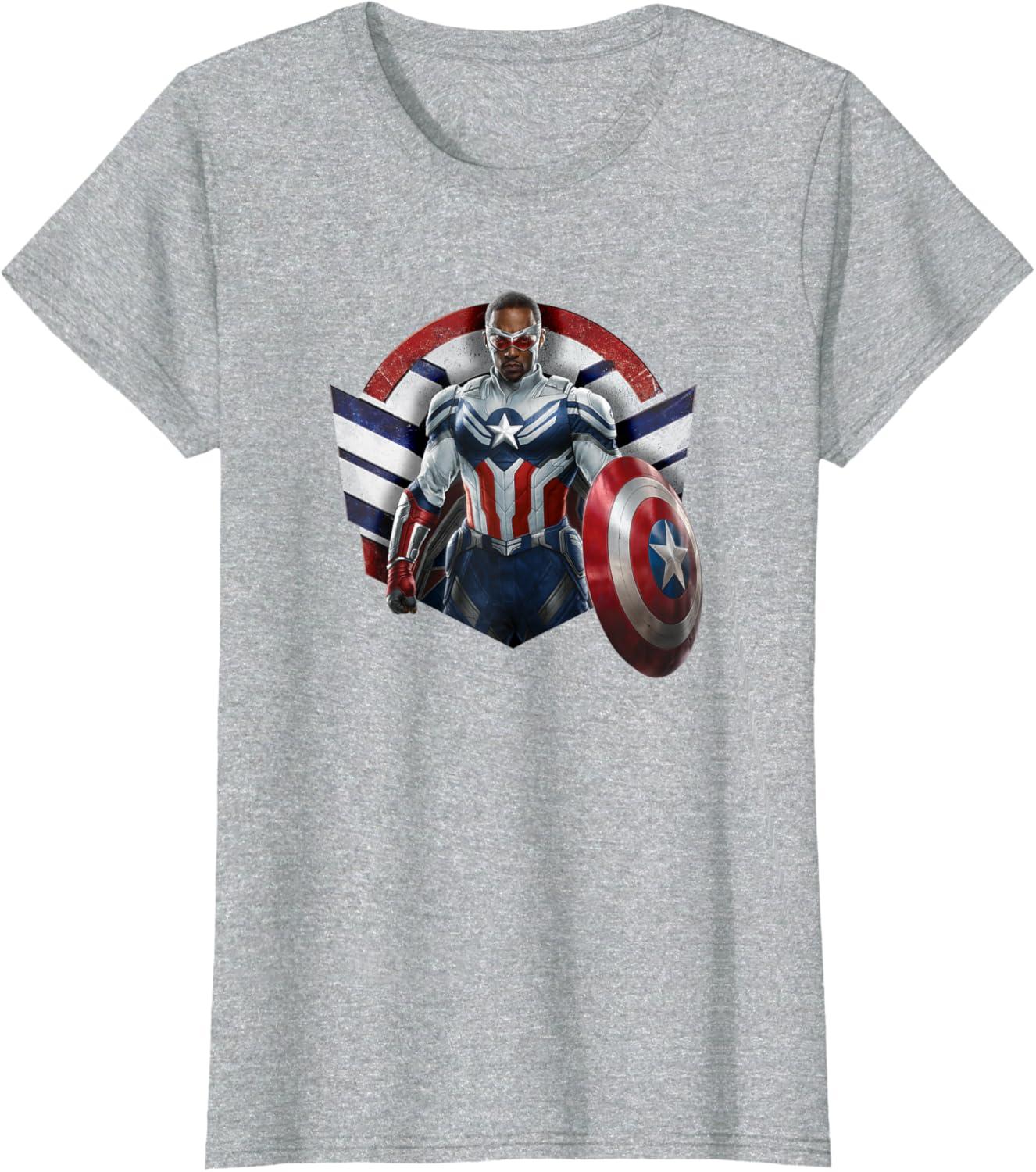 Marvel The Falcon the Winter Soldier Captain America Strong T-Shirt(Heather Blue)