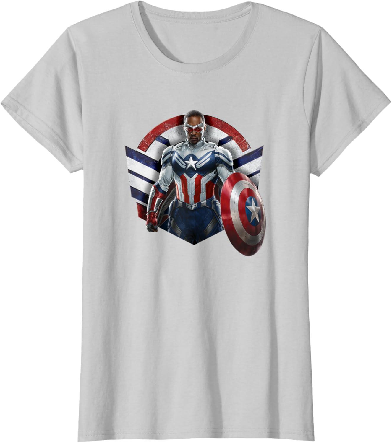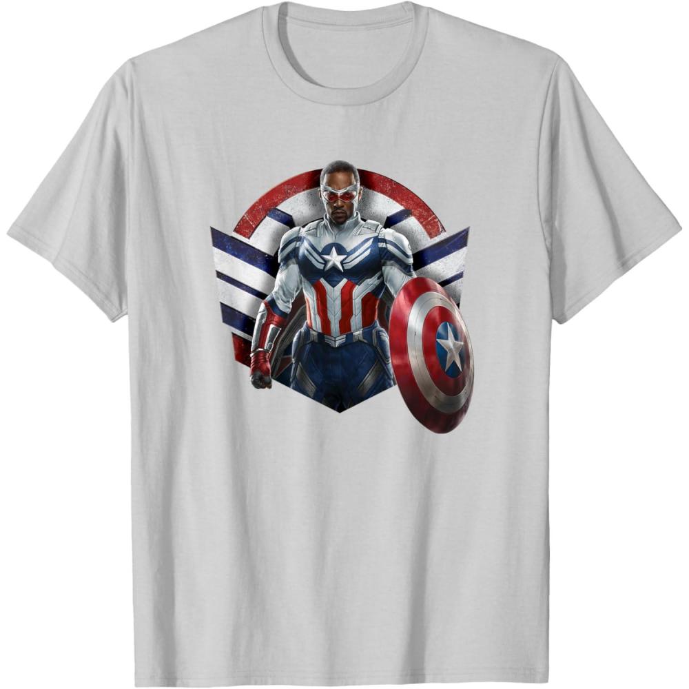 Sam Wilson has what it takes to wield the shield. Celebrate the world’s new Captain America with this bold Marvel design showcasing Sam Wilson’s Captain America Super Hero icon complete with stars and stripes in red, white, and blue. Featuring artwork from Marvel Studios’ The Falcon and The Winter Soldier, streaming on Disney+. The Falcon and The Winter Soldier is a global adventure that picks up after the events of Avengers: Endgame and follows Sam Wilson and Bucky Barnes on a journey that tests their abilities and their patience. Get this The Falcon and the Winter Soldier design in a t-shirt, premium t-shirt, tank top, v-neck, long sleeve tee, or sweatshirt, right here on Amazon.