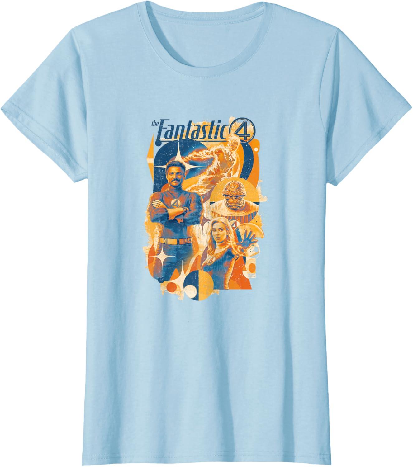 Marvel The Fantastic Four: First Steps Teamup Distressed T-Shirt(Baby Blue)