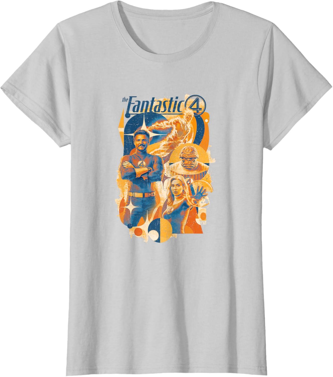 Get ready to stretch the limits of your imagination, ignite your inner flame, and take that first step into a whole new era of the Marvel Universe! Fantastic Four: First Steps brings Marvel’s First Family to the big screen like never before! Brilliant scientist Reed Richards, fiery daredevil Johnny Storm, compassionate powerhouse Sue Storm, and the rock-solid Ben Grimm must learn to harness their extraordinary powers and face a threat that could unravel the fabric of reality itself. It's time to get marvel-ous with these officially licensed Fantastic Four: First Steps graphic tee shirts, hoodies, sweatshirts, and more!