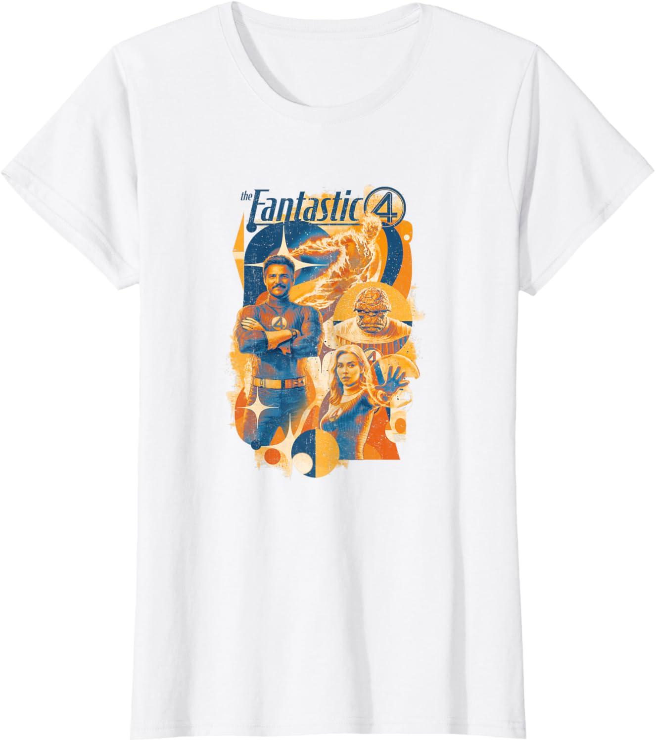 Get ready to stretch the limits of your imagination, ignite your inner flame, and take that first step into a whole new era of the Marvel Universe! Fantastic Four: First Steps brings Marvel’s First Family to the big screen like never before! Brilliant scientist Reed Richards, fiery daredevil Johnny Storm, compassionate powerhouse Sue Storm, and the rock-solid Ben Grimm must learn to harness their extraordinary powers and face a threat that could unravel the fabric of reality itself. It's time to get marvel-ous with these officially licensed Fantastic Four: First Steps graphic tee shirts, hoodies, sweatshirts, and more!