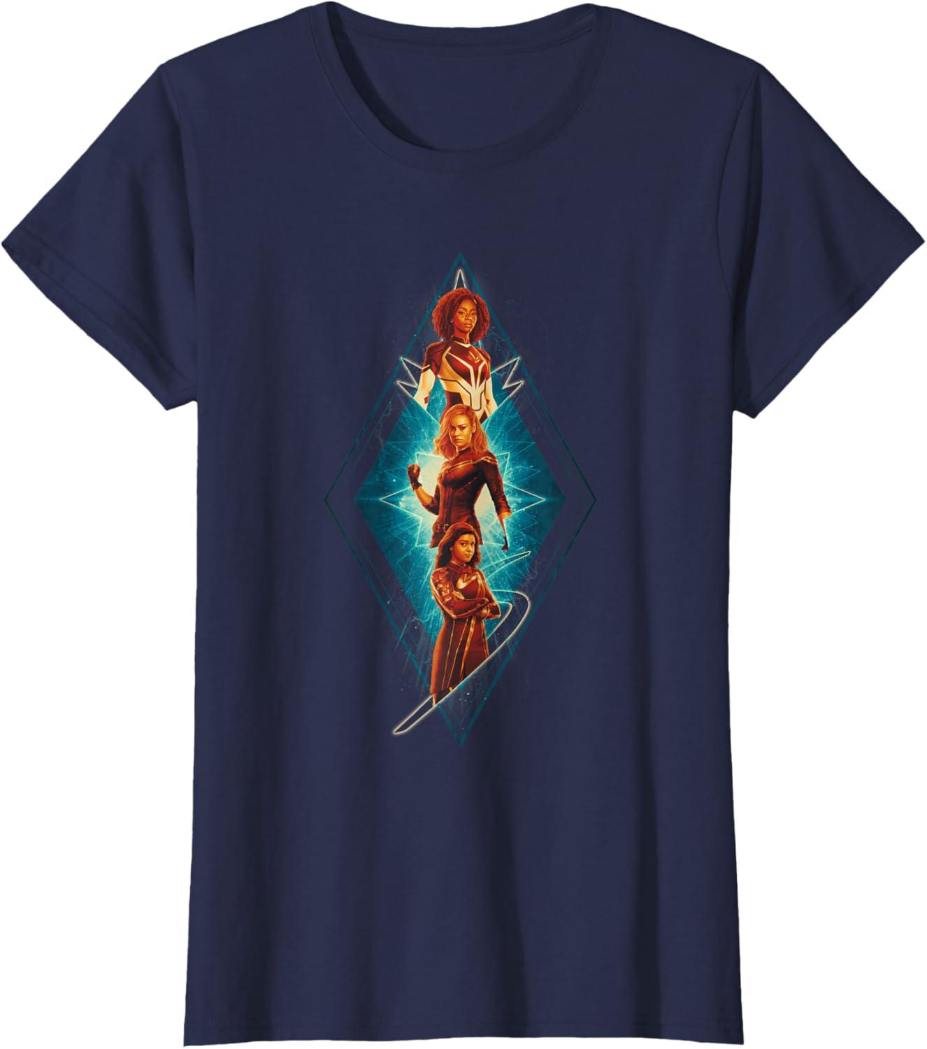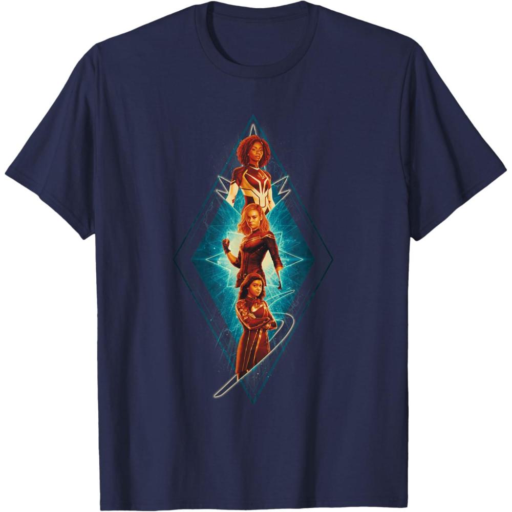 Marvel The Marvels Photon Captain Marvel Ms. Marvel Diamond T-Shirt(Navy Blue)