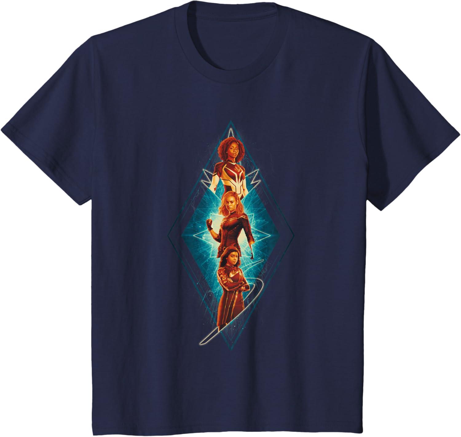Three Marvels unite in Marvel Studios’ exciting new movie “The Marvels”, the sequel to “Captain Marvel” and the newest thrilling chapter in the Marvel Cinematic Universe! This official tee or hoodie features awesome images of Carol Danvers (“Captain Marvel”), Monica Rambeau (Photon from “WandaVision”), and Kamala Khan (“Ms. Marvel”), along with a diamond-shaped icon combining all three of their symbols. When these super heroes team up, incredible adventure is in store. A great gift for a fan of The Marvels or the MCU! Available in youth and adult sizes. Find it in a t-shirt, premium t-shirt, tank top, v-neck, long sleeve tee, hoodie, and sweatshirt.