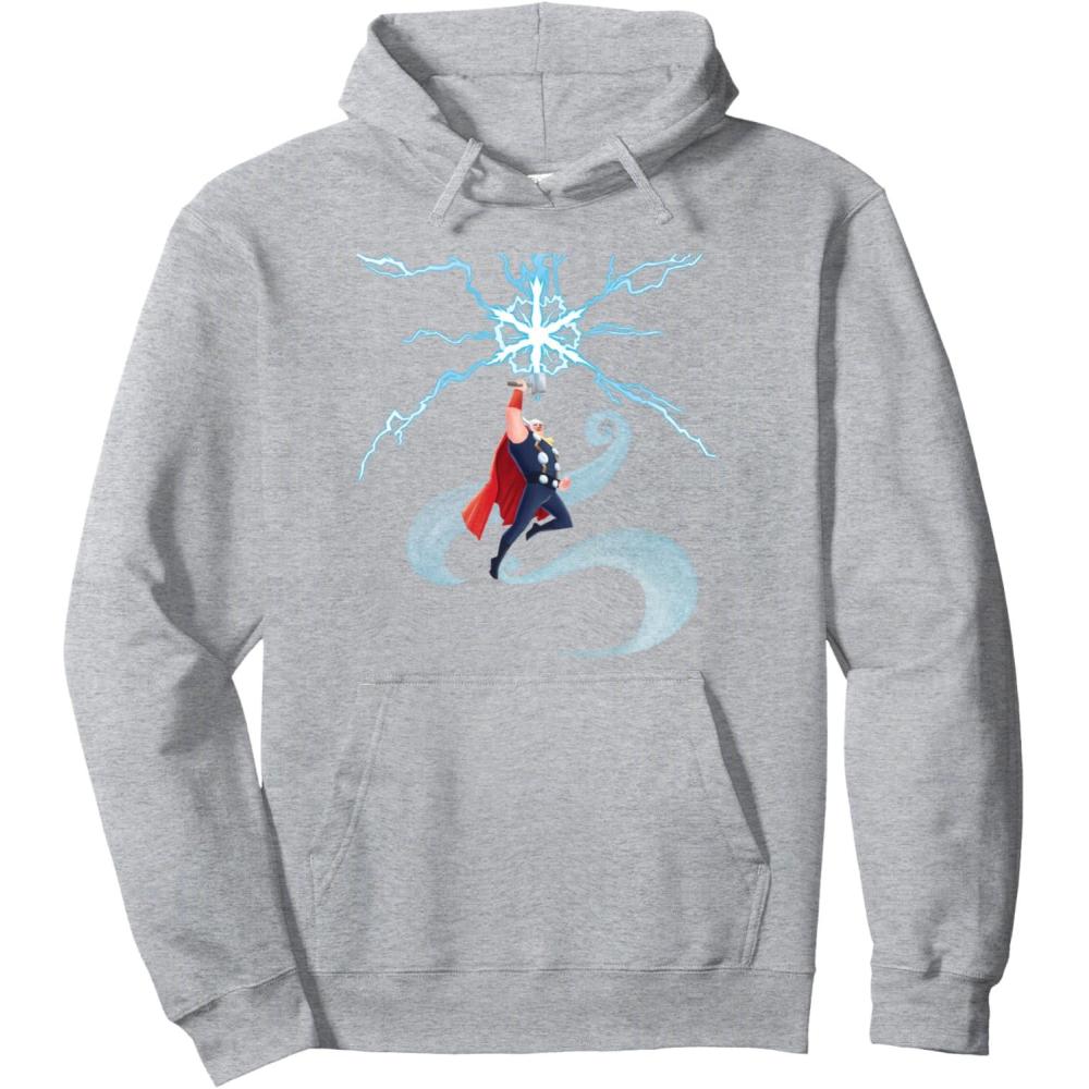 Celebrate the Mjolnir-wielding Avenger this holiday with this mighty Thor hoodie, perfect for staying warm and cozy this winter season. Featuring the God of Thunder creating a snowflake with his enchanted hammer, this holiday Marvel sweatshirt takes your seasonal style to heroic new heights. Also available in a t-shirt, premium t-shirt, tank top, v-neck, long sleeve tee, and sweatshirt, all right here on Amazon.