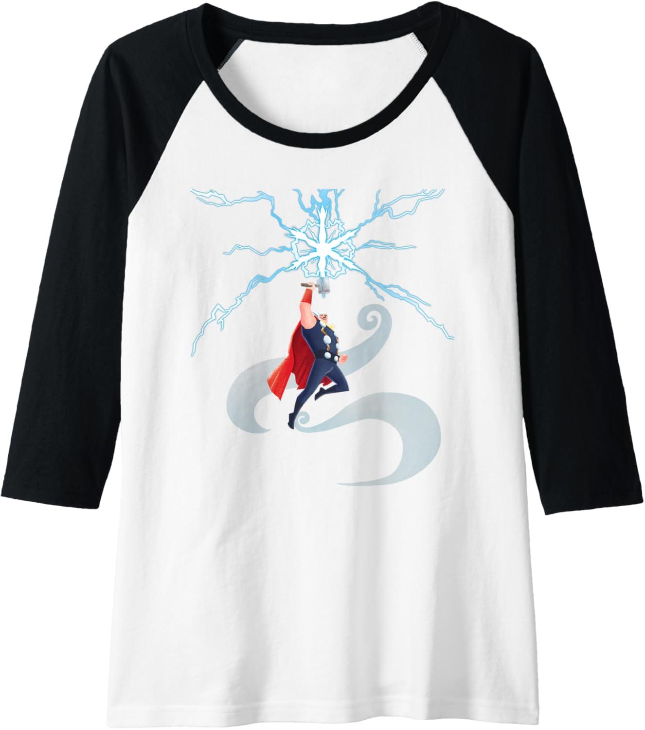 Marvel Thor Winter Snowflake Holiday Raglan Baseball Tee(Black/White)
