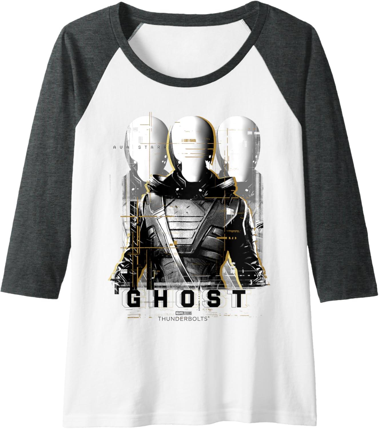 Marvel Thunderbolts Ava Starr Ghost Showcase Raglan Baseball Tee(Dark Heather Grey/White)
