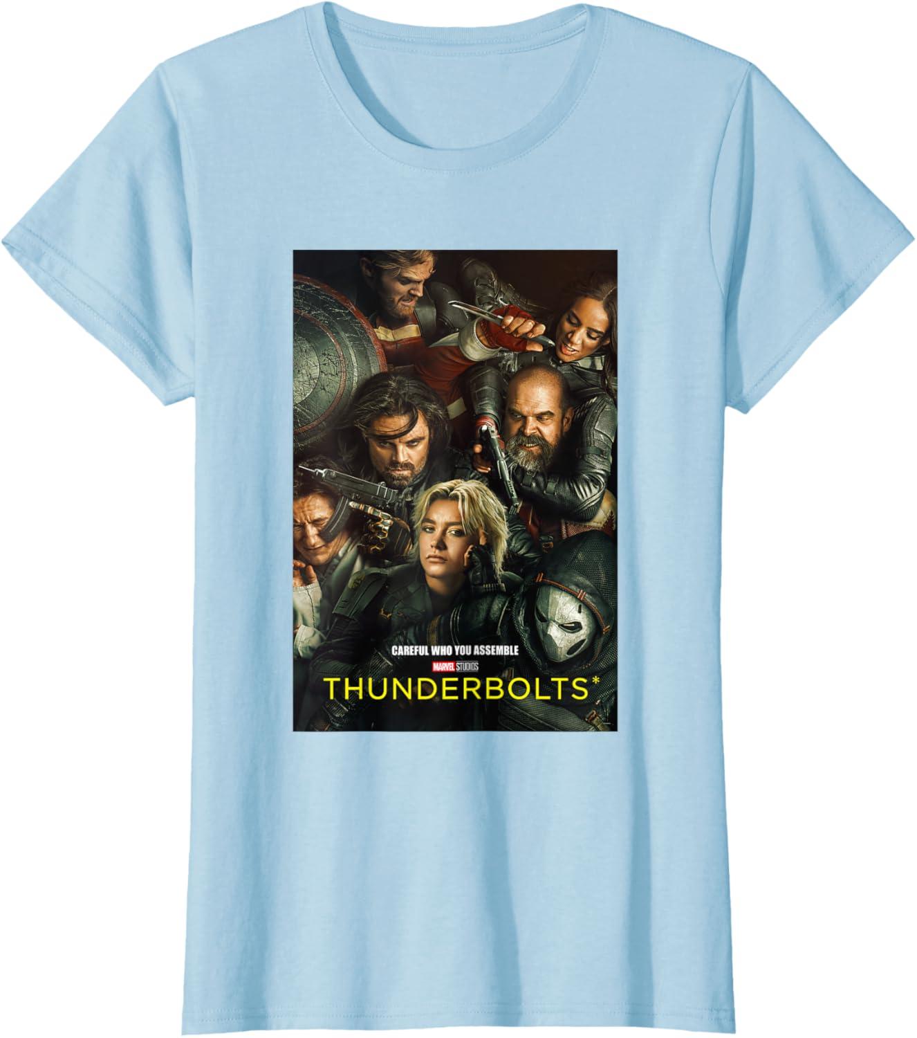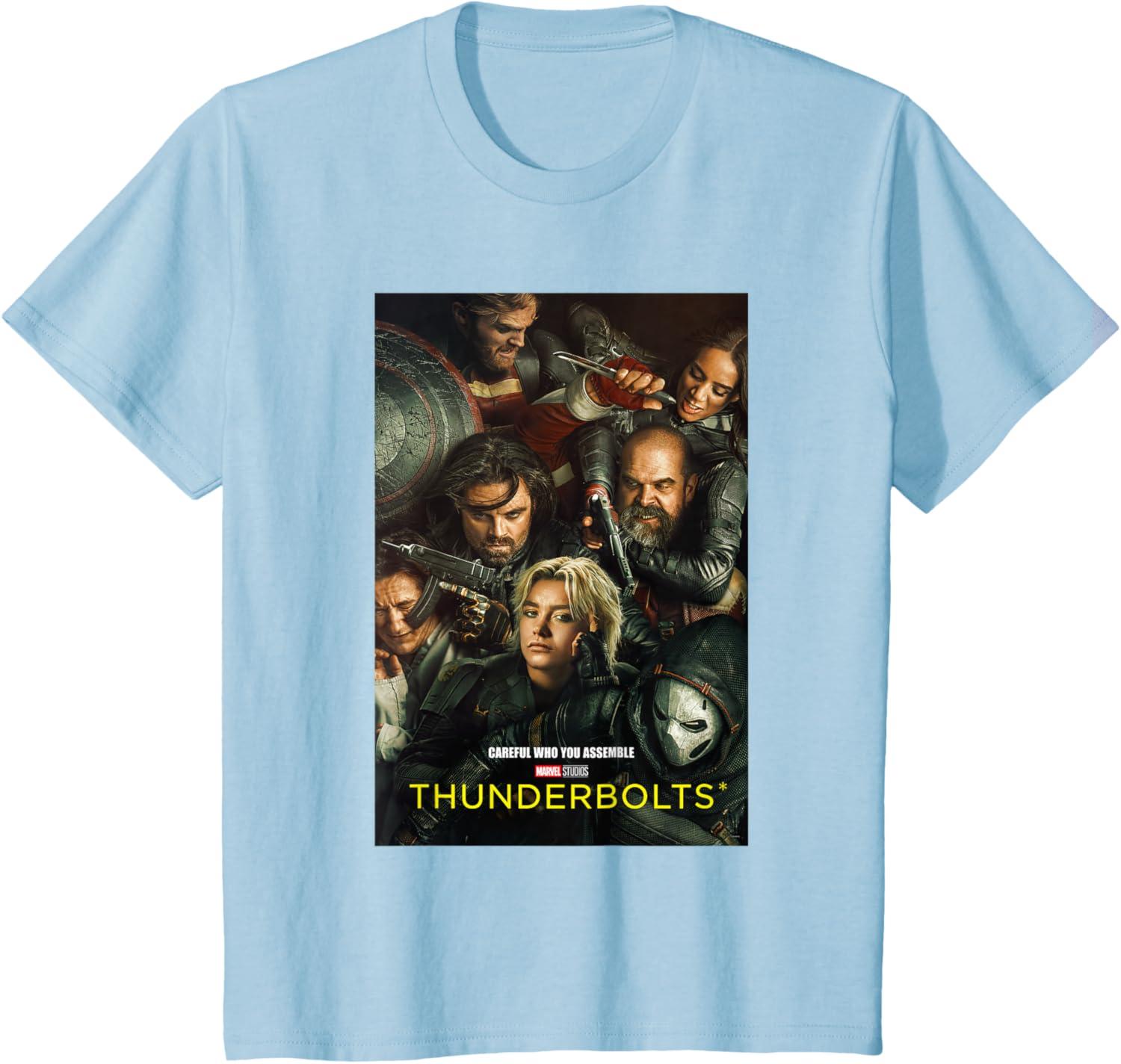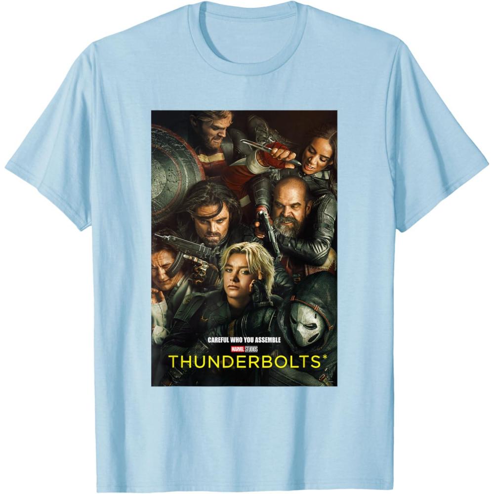 Marvel Thunderbolts Careful Who You Assemble Team Poster T-Shirt(Baby Blue)